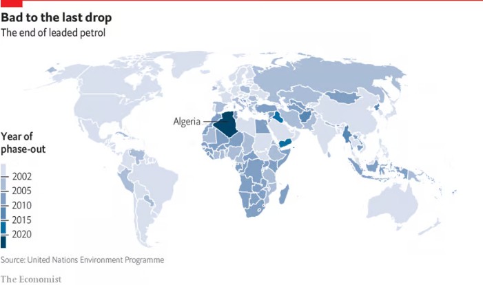 유연 휘발유와 관련된 건강 및 환경 문제로 인해 많은 국가에서 무연 휘발유 사용을 금지하거나 단계적으로 폐지했습니다. 유연 휘발유의 사용은 선진국에서 대부분 제거되었지만 일부 개발 도상국에서는 여전히 사용되고 있습니다. UN은 2025년까지 전 세계적으로 유연 휘발유를 제거한다는 목표를 세웠고 이 목표를 달성하기 위해 많은 노력을 기울이고 있습니다.
