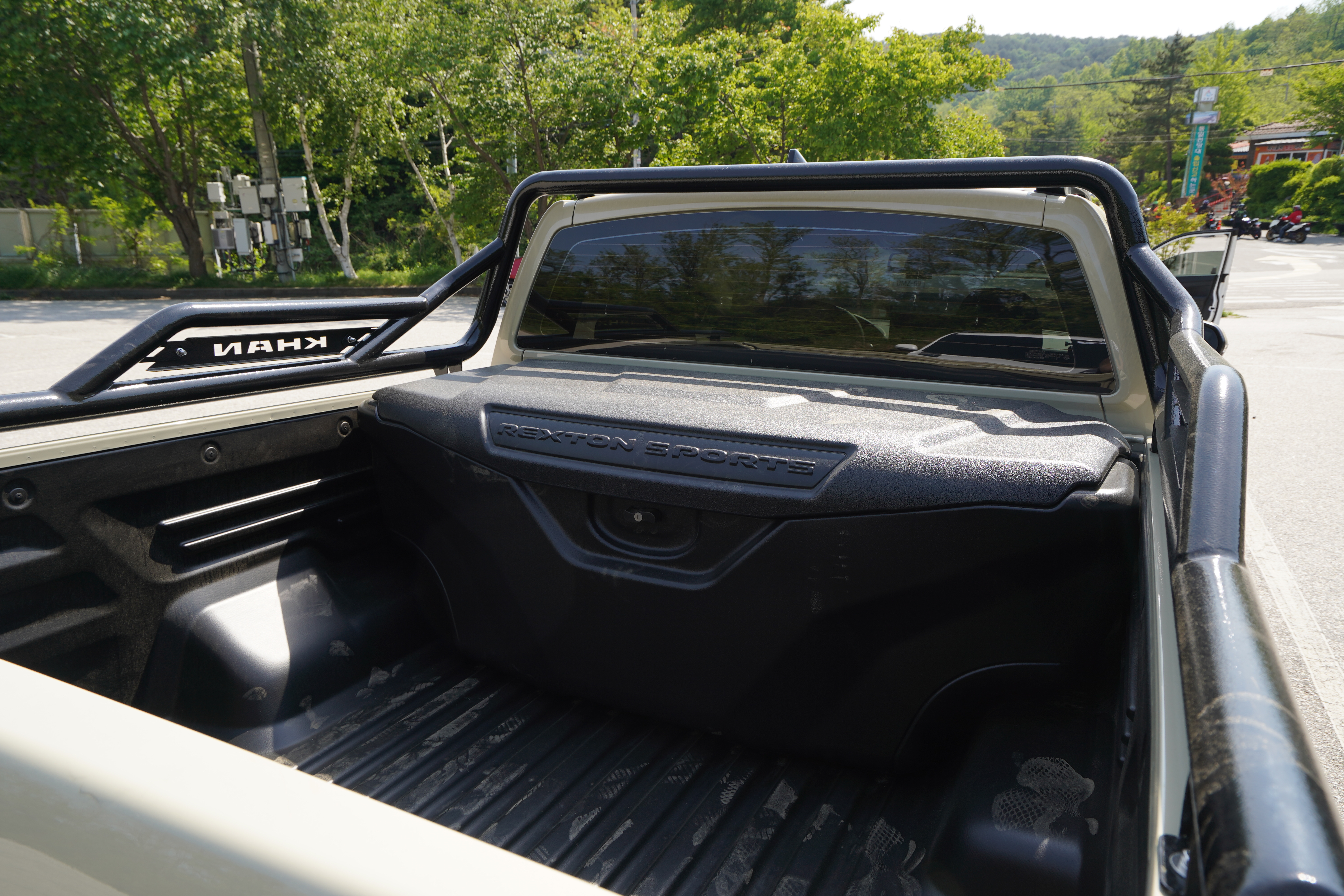총 1,262리터의 적재함을 가지고 있으며 최대 적재용량 700kg까지 적용할 수가 있어 다양한 장비를 탑재할 수 있는 픽업트럭입니다. 렉스턴 스포츠 쿨맨은 가로 1,570mm / 높이 570mm 로 렉스턴 스포츠 칸 쿨맨 모델은 가로 / 높이는 동일합니다. 하지만 렉스턴 스포츠 세로 1,300mm / 렉스턴 스포츠 쿨맨 세로 1,610mm의 크기 차이로 적재함 용량은 1,011리터와 1,262리터의 차이를 보여주고 있습니다.