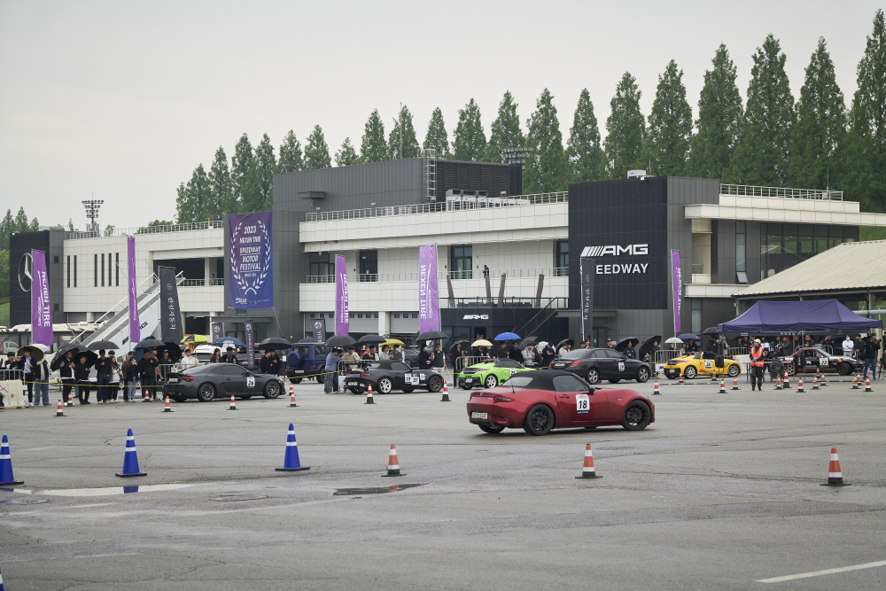 오전에는 타겟 트라이얼과 짐카나에 참여하는 선수들의 현장등록과 간단한 브리핑이 진행되었다. 여기에 에버랜드 스피드웨이 라이센스를 취득하여 서킷이 처음인 일반인들도 서킷을 보다 쉽게 입문할 수 있다는 것이 특징이다. 라이센스 실기 주행 후에는 2023 넥센타이어 스피드웨이 모터페스티벌의 안내와 브리핑 그리고 인스트럭터에 대한 소개로 진행된다. 보통 서킷 레이스같은 경우 다양한 클래스로 꽤 까다롭게 느껴지지만 넥센 페스티벌에서는 보다 간단한게 구성되어 있어 좋은 편이다.