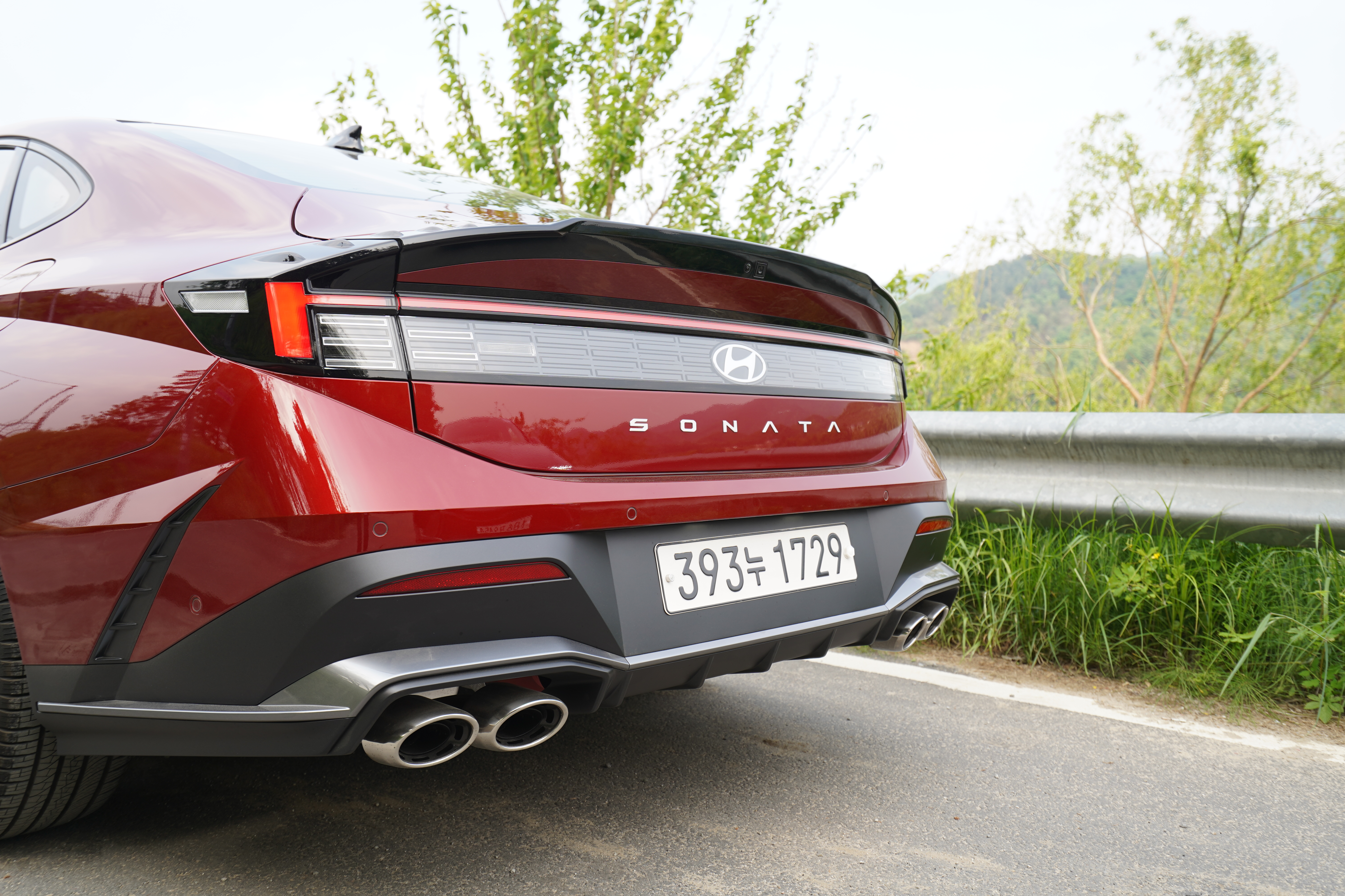 The N-Line has a flap style that raises the angle at the end of the rear spoiler in a right angle direction so that air hits the front, and aerodynamic performance is improved by applying aero parts used in sports cars that are difficult to meet in general mass-produced mid-size sedans.