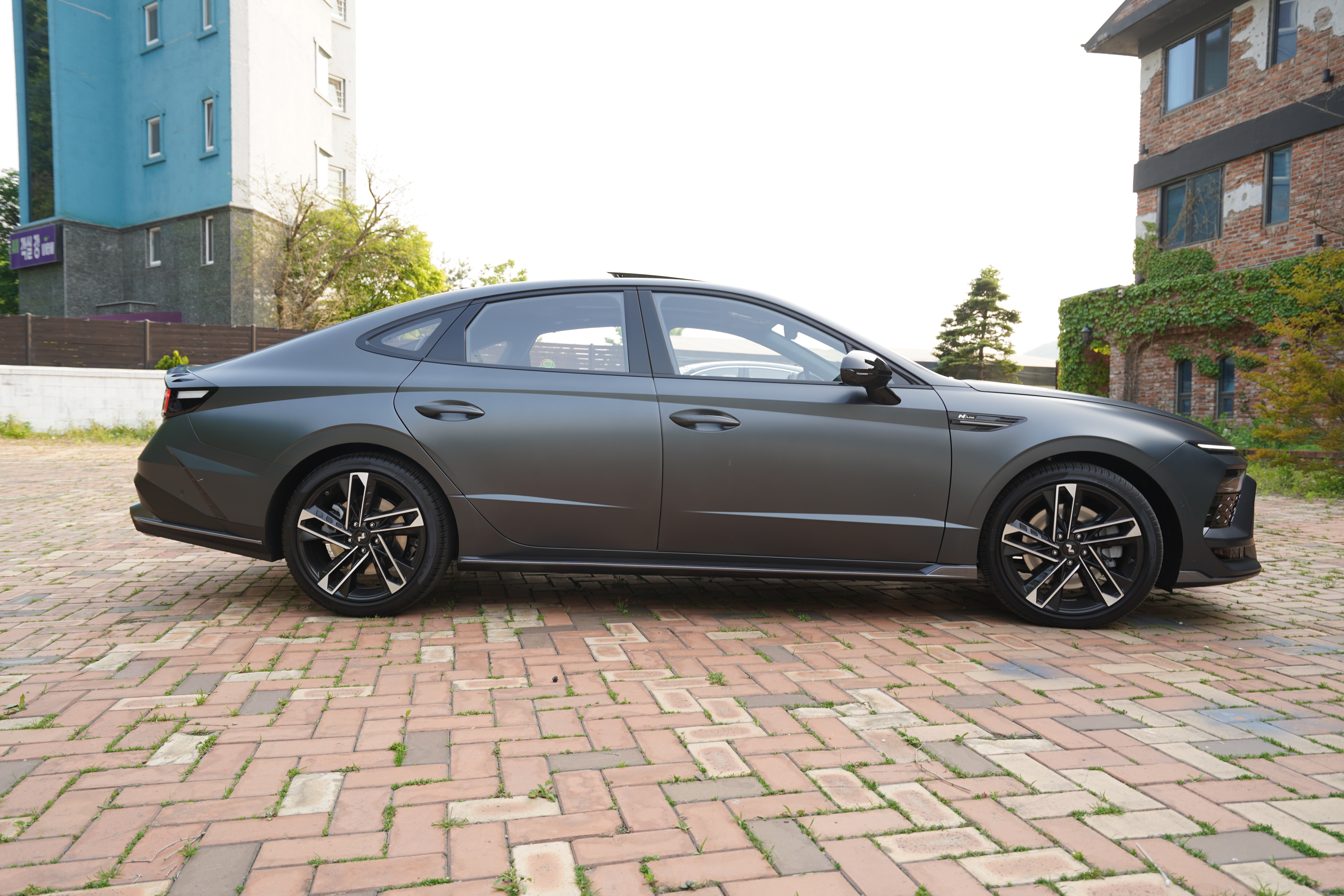 However, the side design is not so easily changed. However, this 2024 Sonata The Edge also shows significant changes in the side design. A new design was applied to the front fender, and a black garnish on the side mirror, a side sill garnish, a garnish added to the shadow of the character line, and a new wheel design, all showing traces of a lot of effort to change the side design in a given environment.