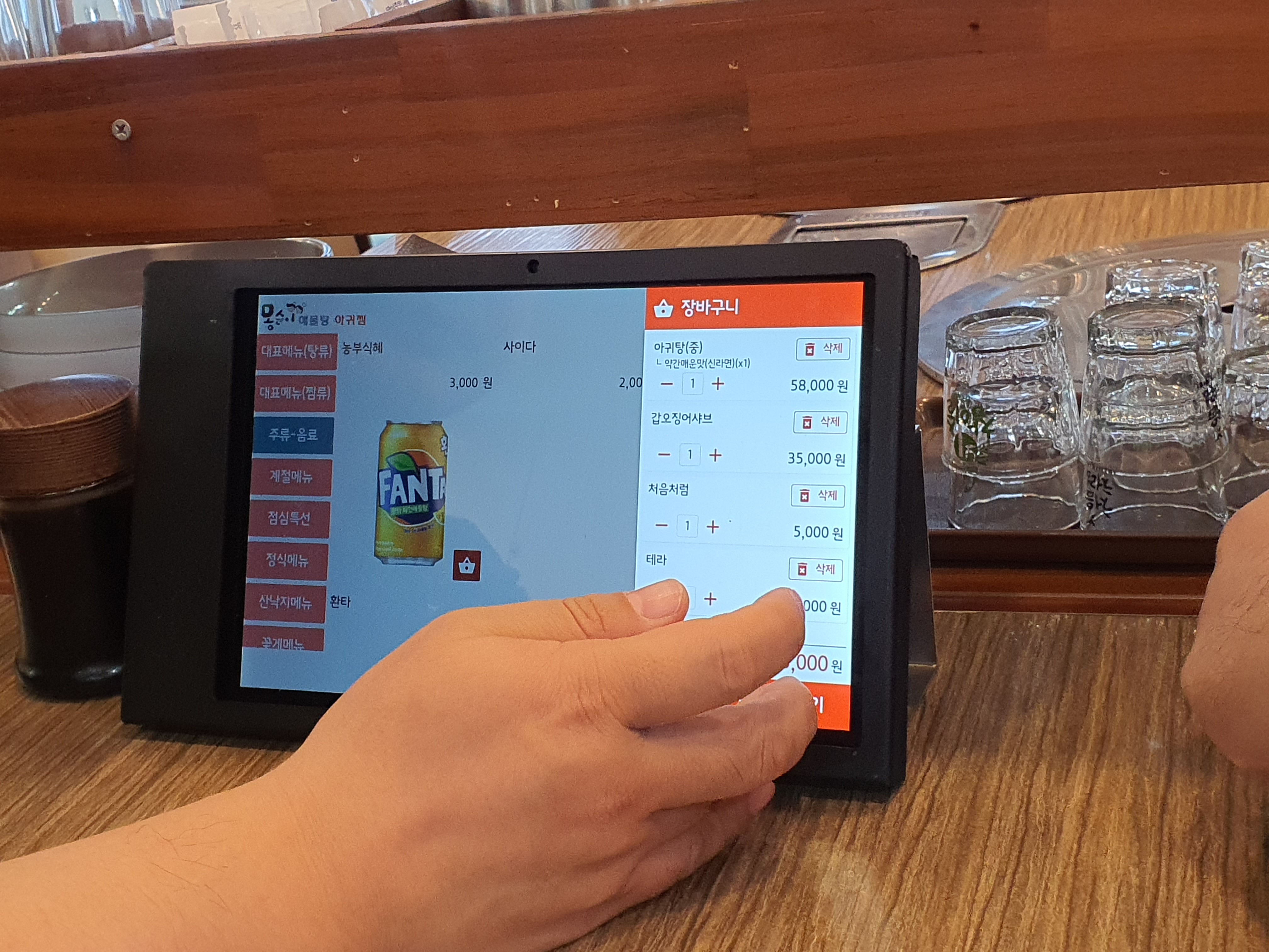 주문은 이렇게 포스기로 주문이 가능하다. 주문이 어려운 분들이라면 직접 주분도 가능하다.