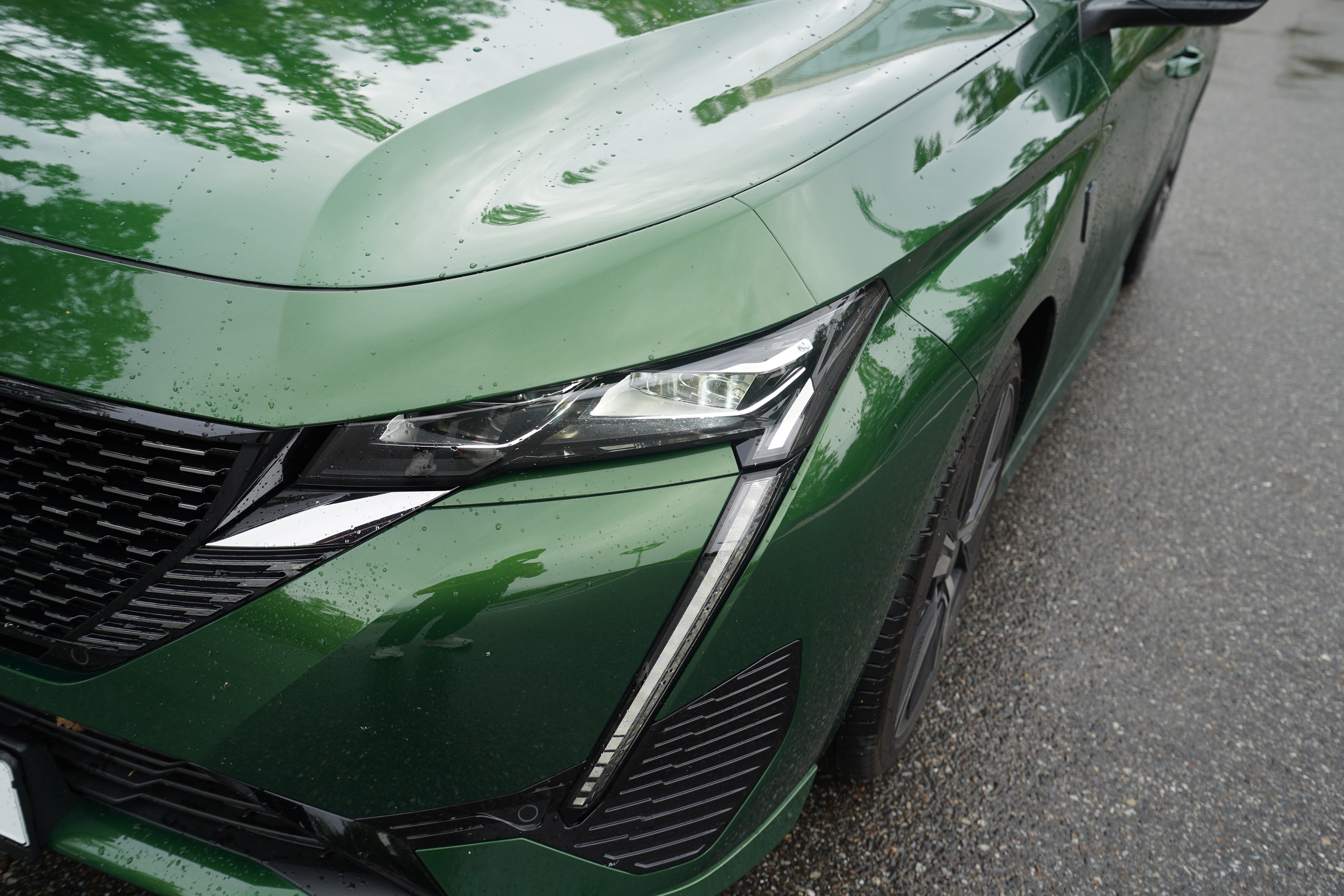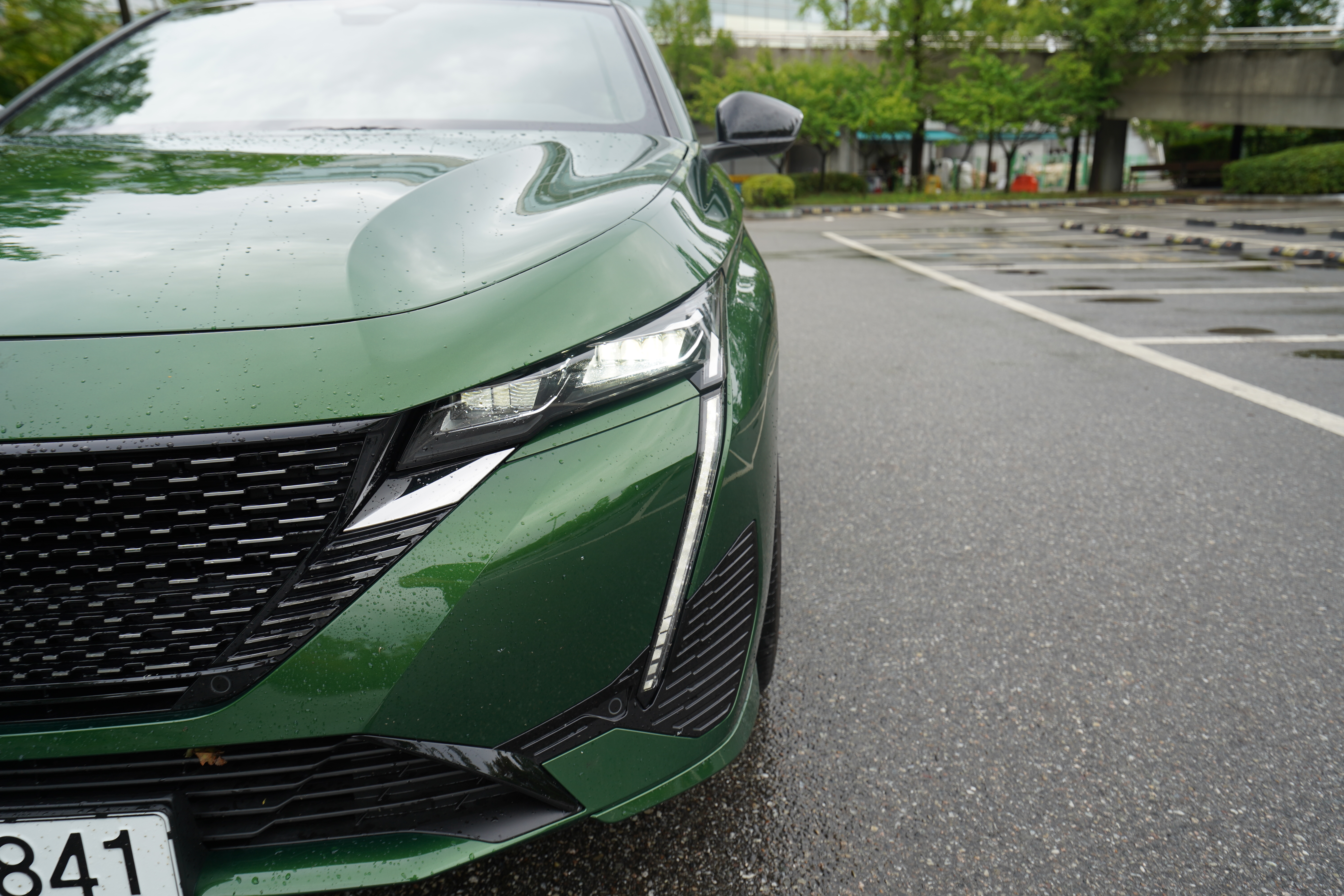 푸조 308 1세대 그리고 2세대 모델까지는 그저그런 모델이였다. 디자인적인 포인트도 경쟁 모델에 비해서 특히나 해치백 분야에서 독보적인 폭스바겐 골프와 비교하면 가격이 조금 밖에 저렴하지 않았지만 굳이 살 이유도 없었다. 하지만 2021년 9월에 최초 공개된 푸조 308 3세대 모델은 이야기가 다르다. 디자인적인 부분에서 지금까지 푸조에서 보여줬던 느낌이 아닌 완전히 새로운 느낌으로 3세대 모델의 메인 컬러인 올리브 그린 컬러는 포르쉐 다음으로 잘 어울리는 차량 같은 느낌을 주고 있다. 특히나 전면부의 독사의 송곳니 같은 느낌은 자칫 캐딜락 같은 느낌을 주기도 하지만 그래도 자세히보면 입체적인 그릴과 더불어 푸조의 새로운 얼굴이 신선하다.