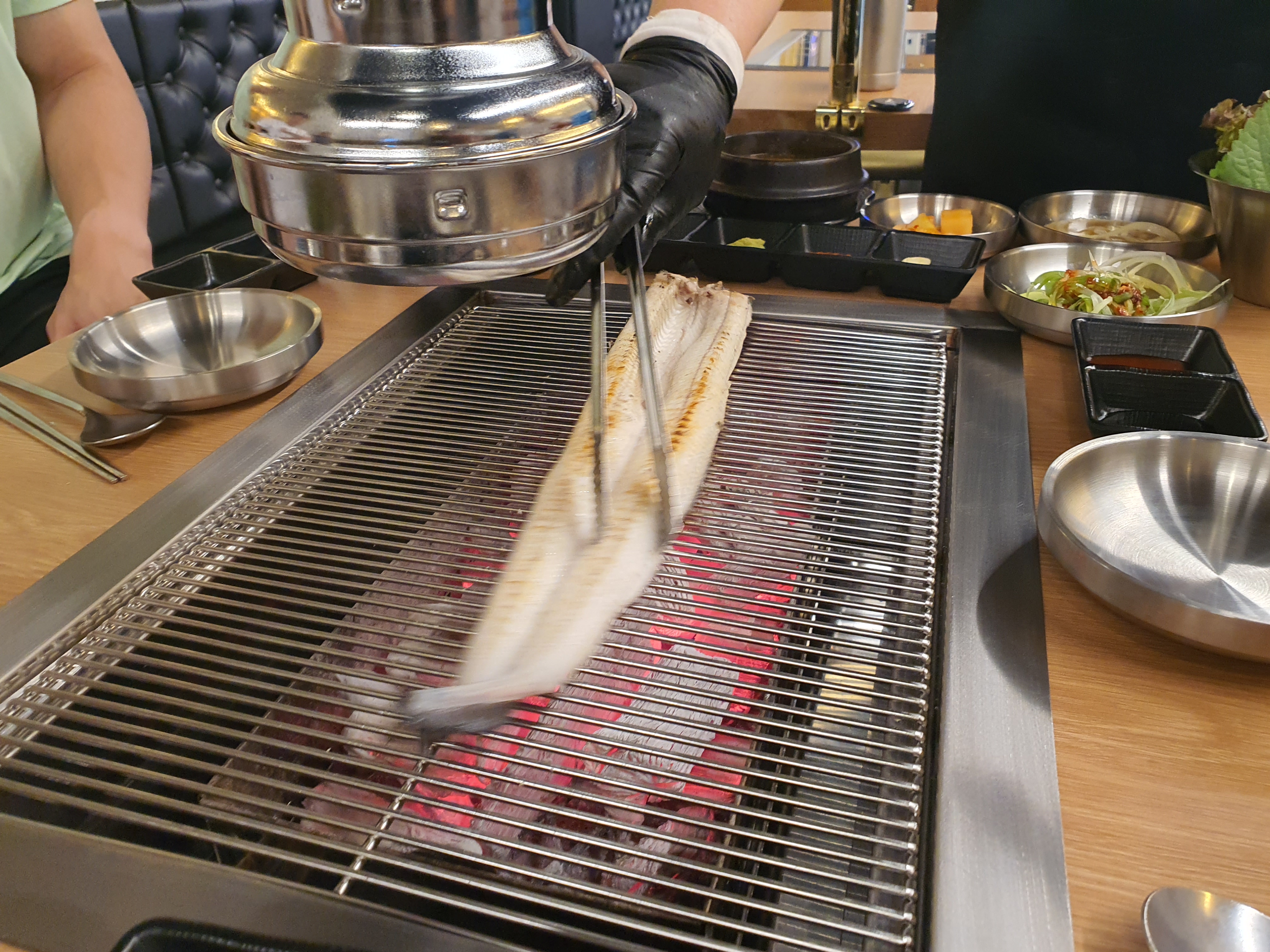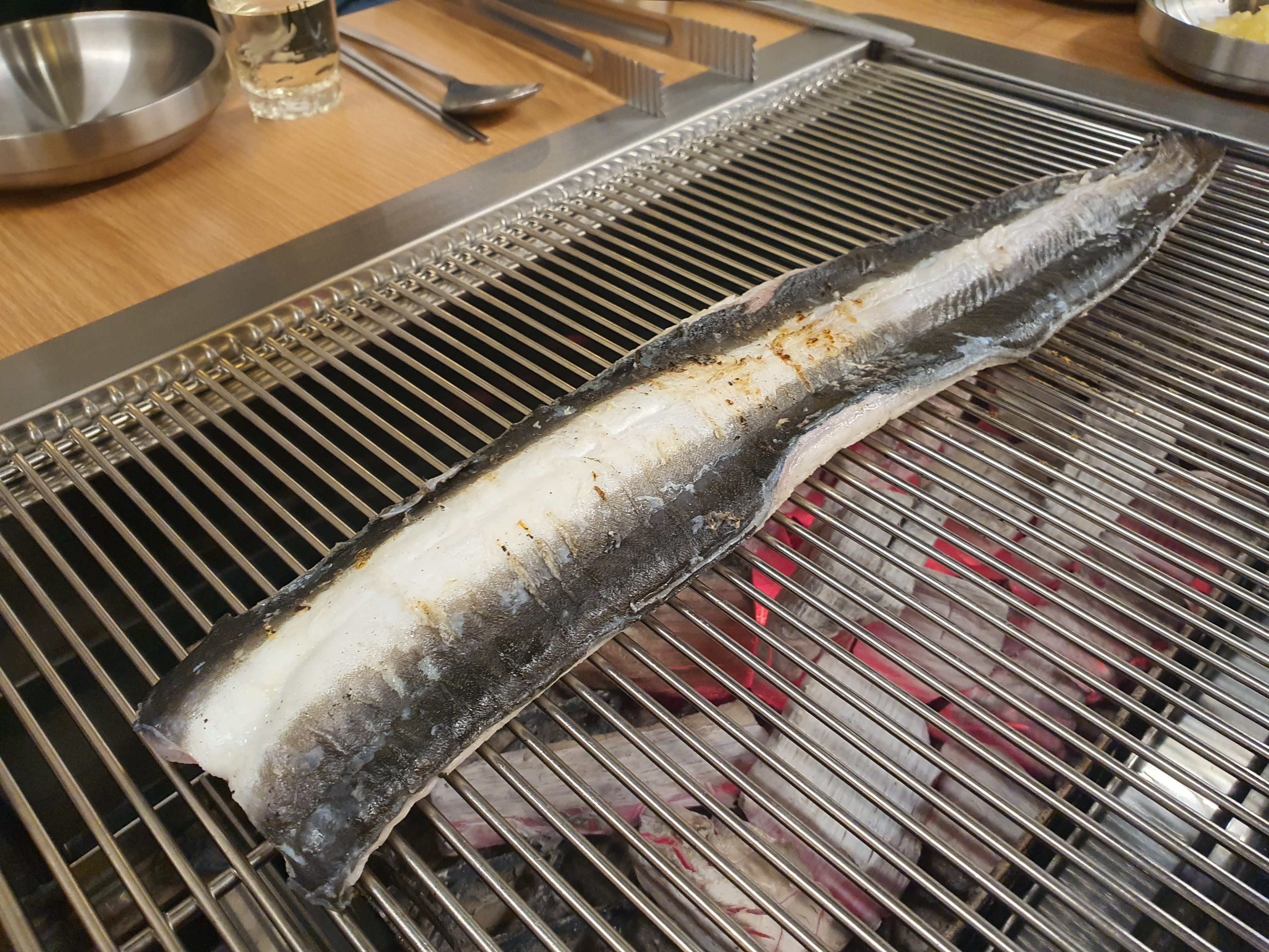 장어 상태도 꽤나 좋은 편이다. 이렇게 한마리씩 구워주시는데 상당히 쌘 불에 바싹 익혀서 기름기가 쏙 빠진 장어를 맛볼 수가 있다. 특히나 소고기와 장어의 궁합은 꽤나 좋은 편인데 평소 삼겹살과 장어를 먹어본 사람들이라면 소고기 조합으로 먹어보면 이 조합이 절대 나쁘지 않다는 것을 알 수가 있다.