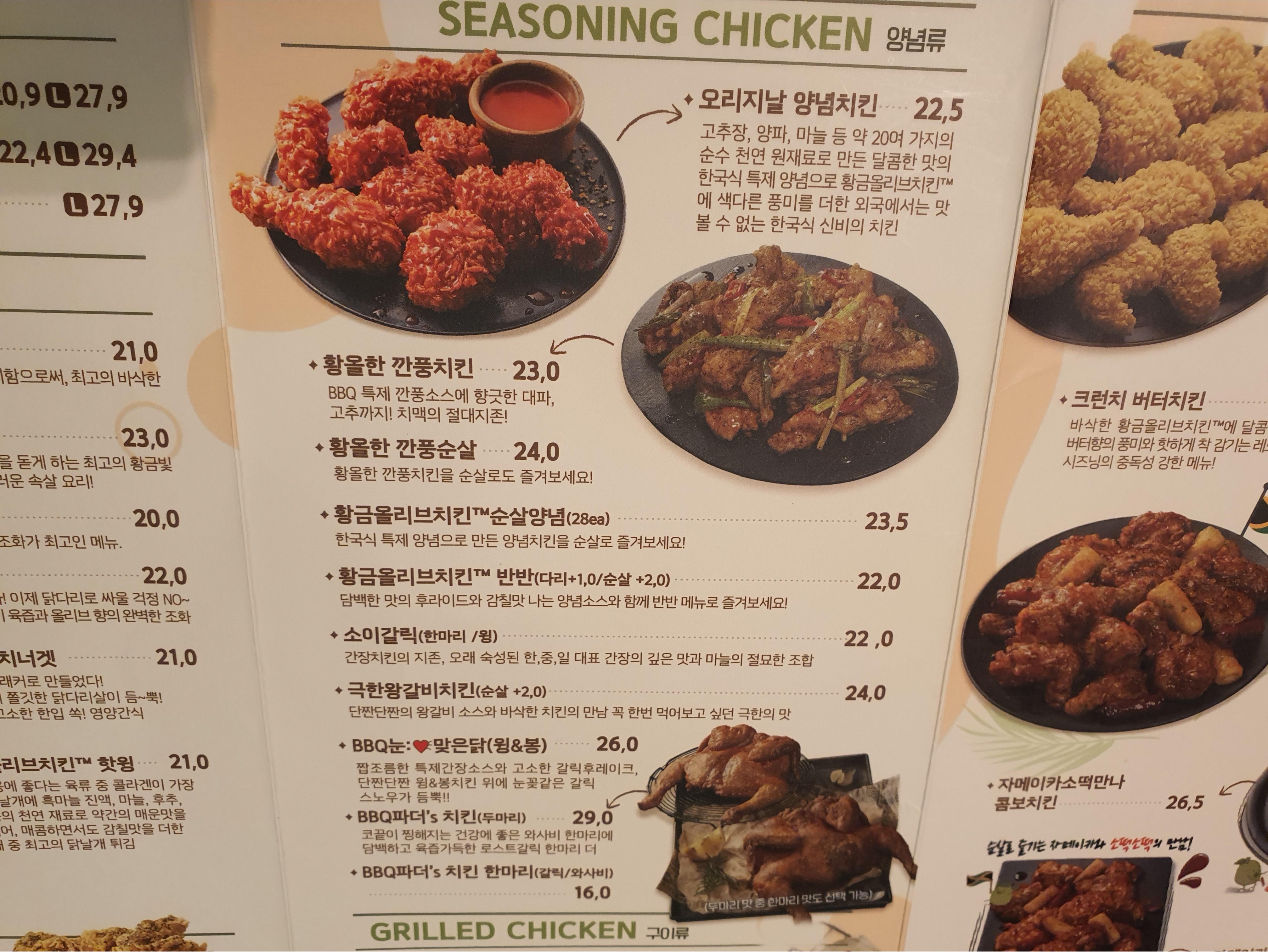 BBQ의 시그니처 메뉴인 황금 올리브치킨 플래터는 기본으로 판매하고 있으며 각 부위별로 소스별로 다양한 치킨을 판매하고 있다. 아마도 시범적으로 메뉴를 만들어 이 곳에서 반응을 보고 출시하는 메뉴도 있지 않을까? 라는 생각을 해봤는데 꽤 괜찮은 방식이 아닐까 생각해보기도 했다.