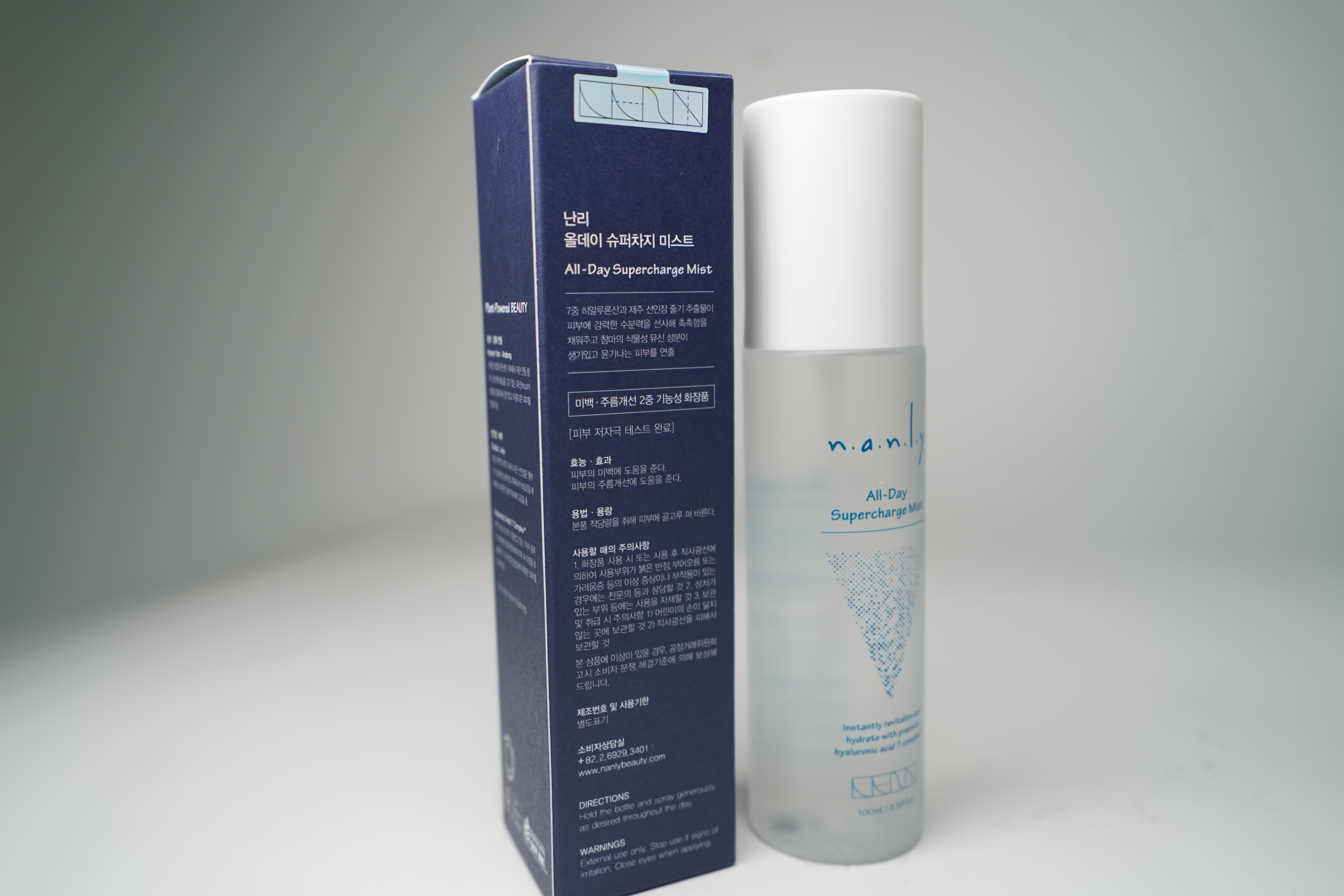 난리 올데이 슈퍼차지 미스트 제품은 유기용매 없이 상온 공기 순환 추출 공법으로 국내산 참마와 선인장의 유효성분을 고함량으로 담았고 K-슈퍼푸드로 알려진 제주 선인장 줄기 추출물과 7가지 복합 히알루론산이 포함된 비건 미스트 제품으로 피부를 하루 종일 촉촉하게 만들어주는 제품이다.