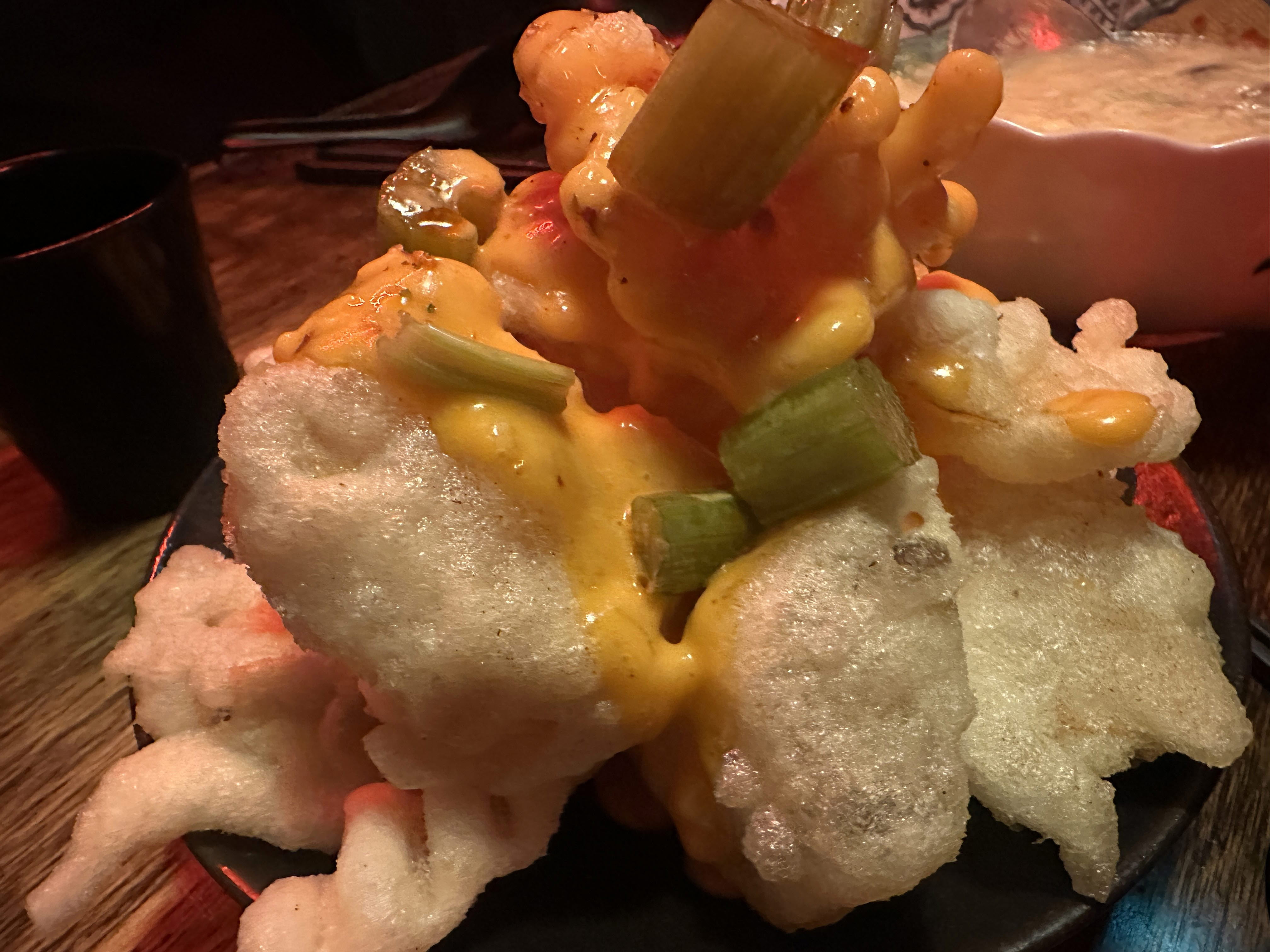 튀김류를 좋아하는 분들은 유림기나 마라마요새우 추천하는데요. 오른쪽에 마라마요 새우는 새우에 버섯튀김 그리고 특재 마라마요소스를 곁들인 요리로 상큼한 샐러리가 올라가 있어서 더욱 맛있습니다.