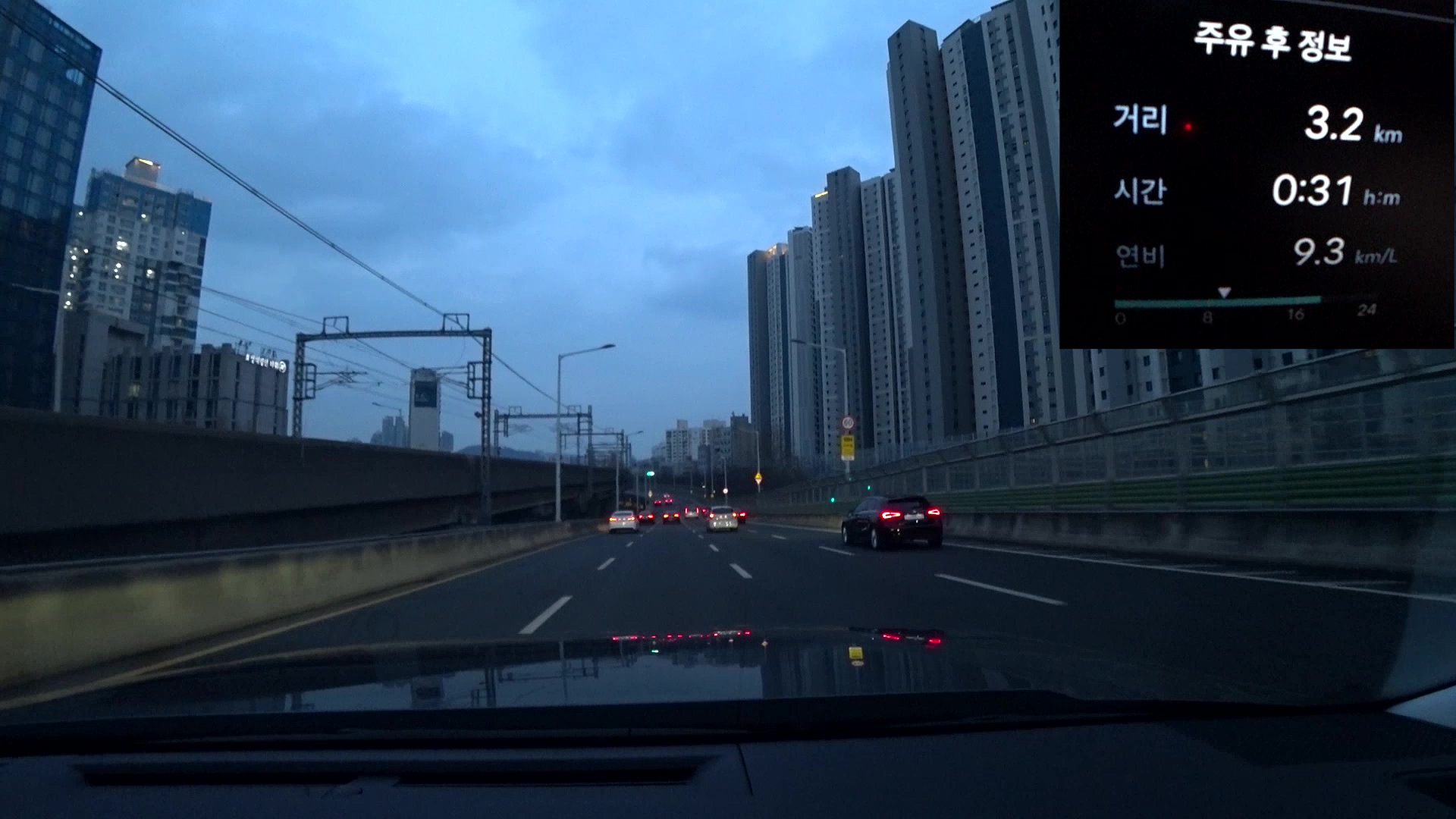 꽉 막히는 강남 퇴근길 연비 테스트입니다. 비교하는 모든 차량들은 동일한 시간에 동일한 경로로 테스트를