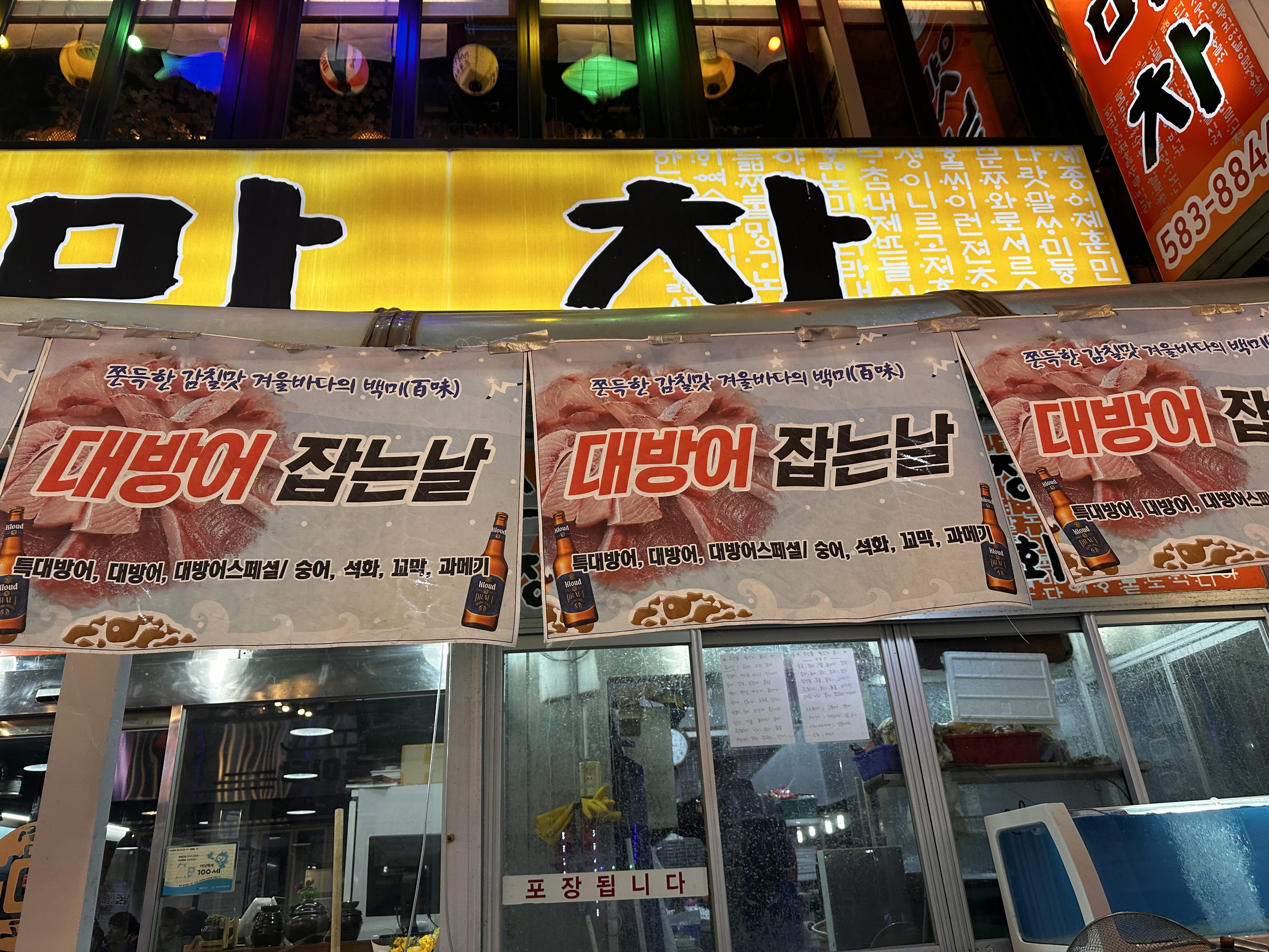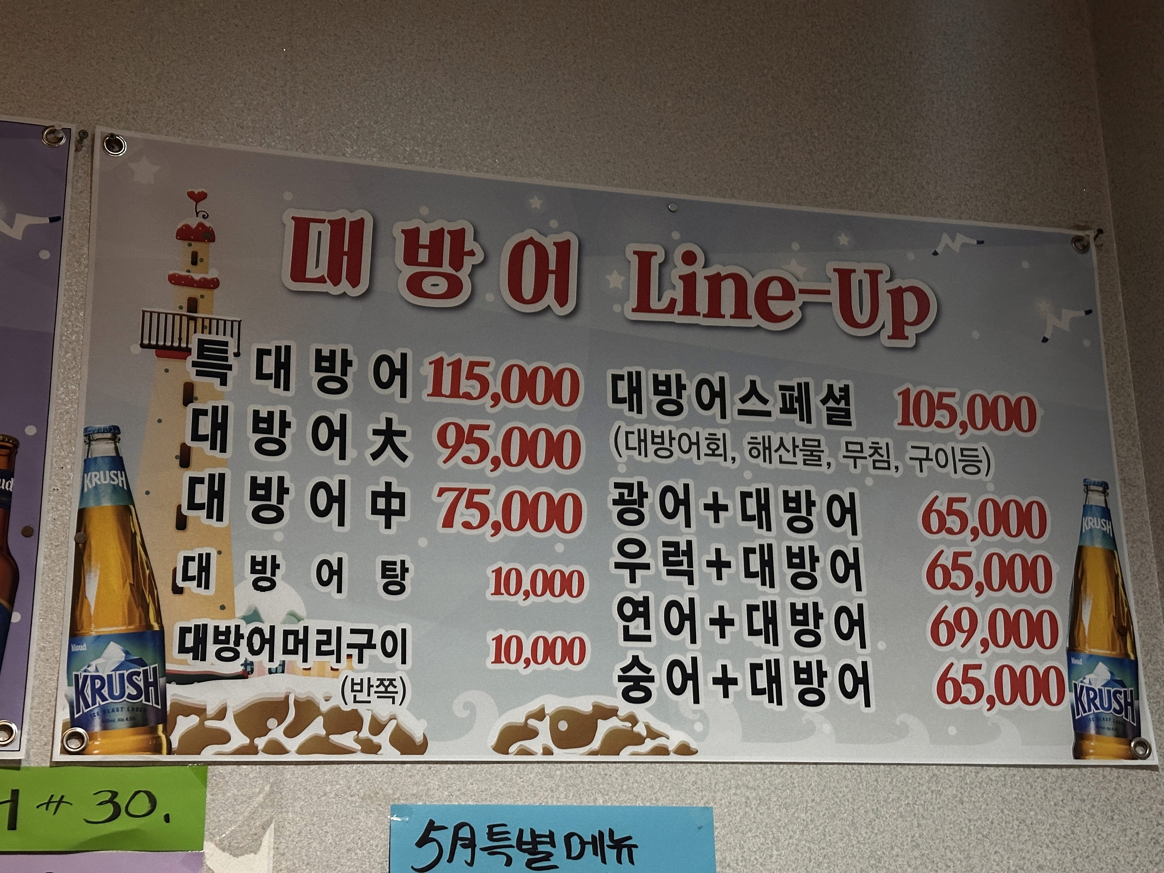 방어 이외에도 다양한 해산물을 취급하는데, 특히 대형 새우와 전복, 그리고 산낙지는 이곳을 방문한 손님들에게 꼭 추천하고 싶은 메뉴입니다.