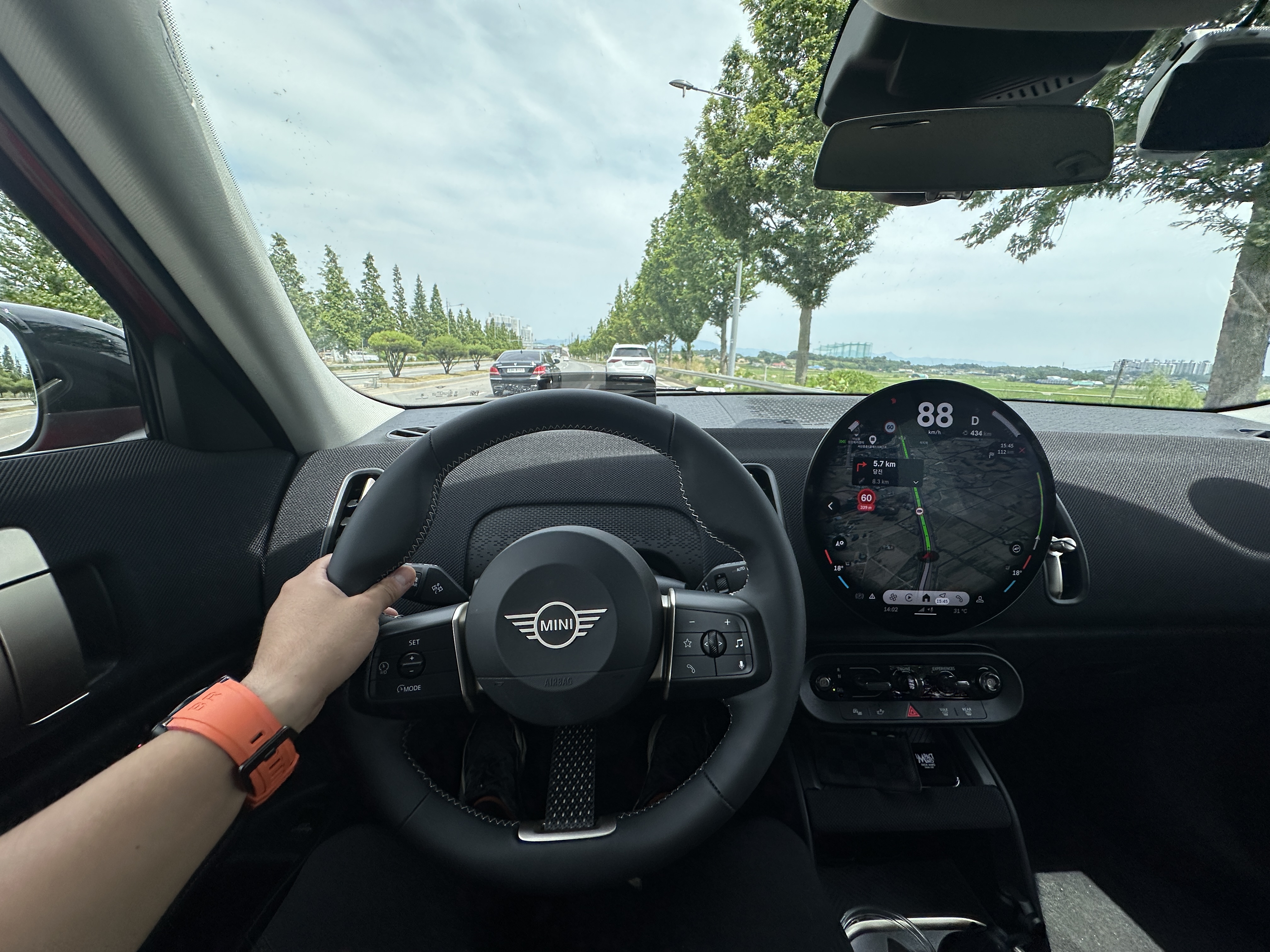 2.0리터 4기통 터보 엔진이 장착된 컨트리맨 S는 204마력을 발휘하며, 7단 듀얼 클러치 변속기와 조합되어 부드럽고 빠른 변속이 가능하다. 스포츠 모드에서의 주행 성능이 특히 인상적이다. 서스펜션은 단단하면서도 승차감을 유지하여 장거리 주행에도 피로감이 적다. 또한, 사륜구동 시스템이 적용되어 다양한 도로 조건에서 안정적인 주행이 가능하다. 정지 상태에서 100km/h까지 가속 시간은 약 7.4초로, 빠른 반응성을 자랑한다.