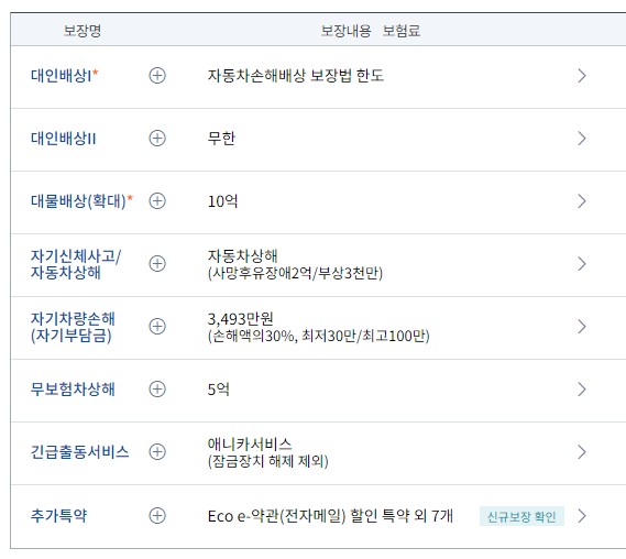 - 자기 차량 손해 담보특약: 차량의 침수, 도난, 화재 등의 피해를 보상합니다.