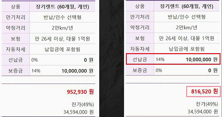 자동차 장기렌트 보증금 선수금에 차이는 알았는데 어떤 상황에서 선수금을 더 많이 넣는 것이 유리할까?