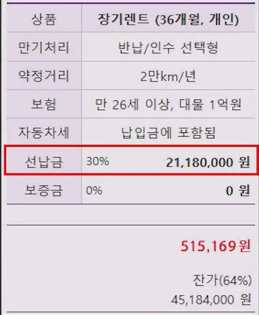 자동차 장기렌트 선납금 (선수금)이 존재하는 이유는 분명히 있다.