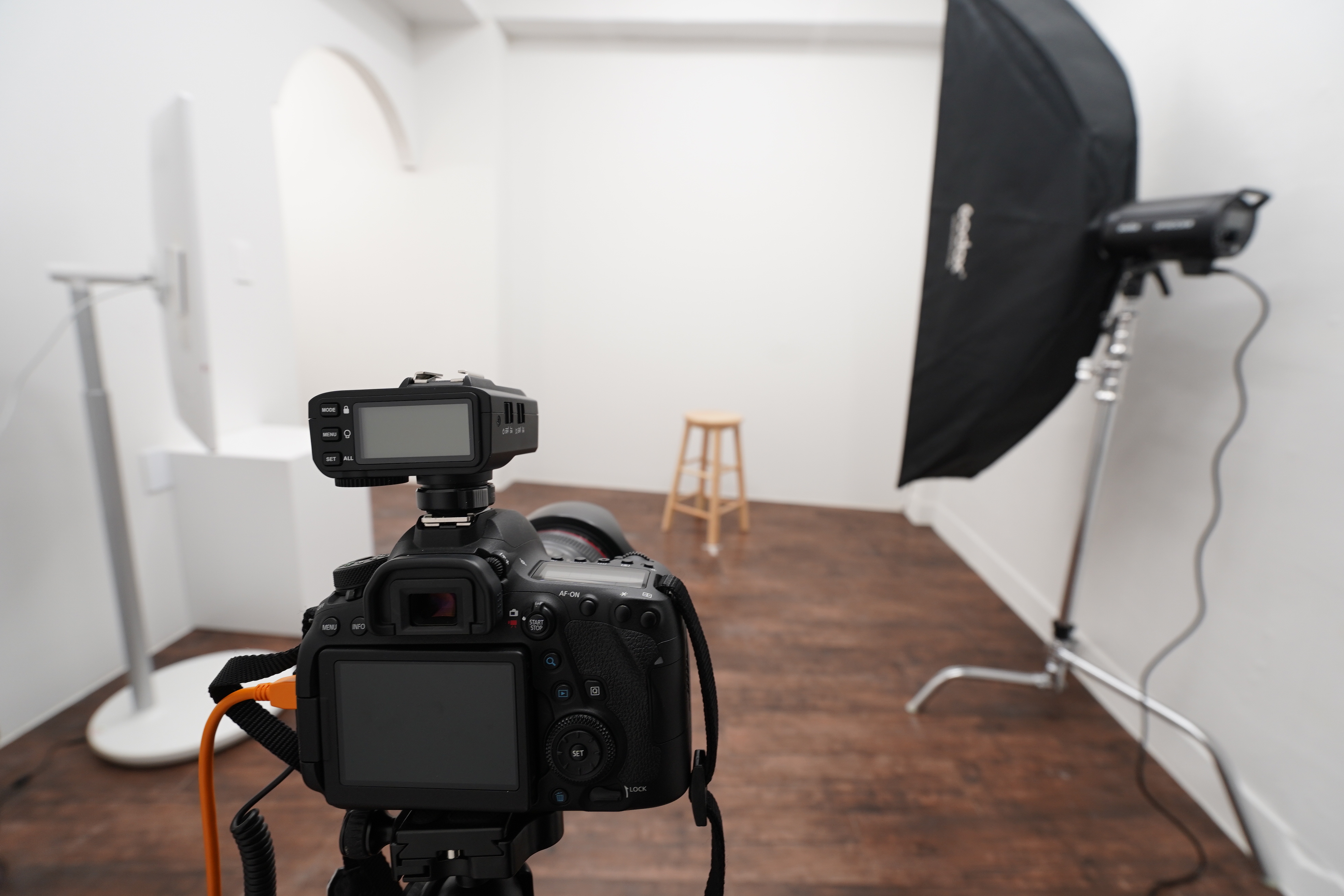 하지만 스튜디오 티프는 내가 촬영할 의상만 가져가면 되는 곳이고 모든 장비는 기본적으로 최적으로 세팅이 완료되어 있는 곳이다. 조명 또한 실제 모델 촬영 시 사용하는 조명은 물론 동조기에 촬영 구도까지 세팅이 마친 DSLR이 준비되어 있기에 내가 따로 장비를 준비할 필요가 없다는 것이 장점인 곳이다.