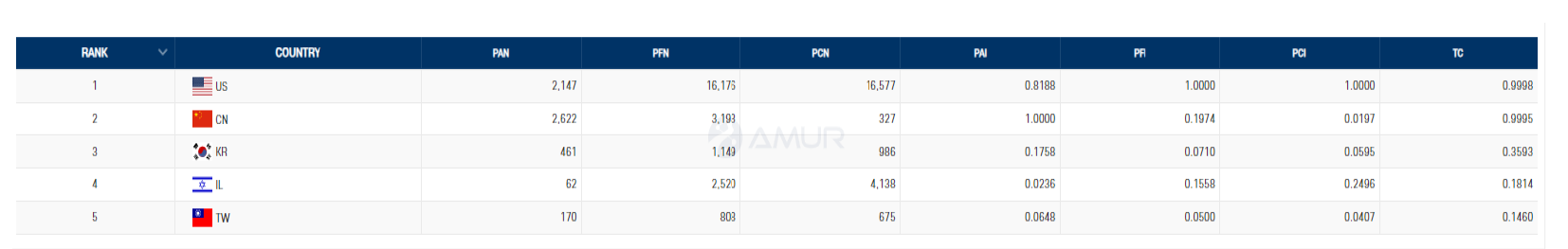 또한 GPU 국가 경쟁력과 기업 경쟁력을 분석해보면 GPU 분야에서 미국과 중국이 압도적으로 경쟁력이 높다는 것을 볼 수 있으며 실제 기업 기술 경쟁력을 살펴보면 미국 기업들이 대부분 TOP 10을 차지하는 것도 알 수가 있는 정확한 데이터를 만들어주는 기업이 바로 아무르이다.