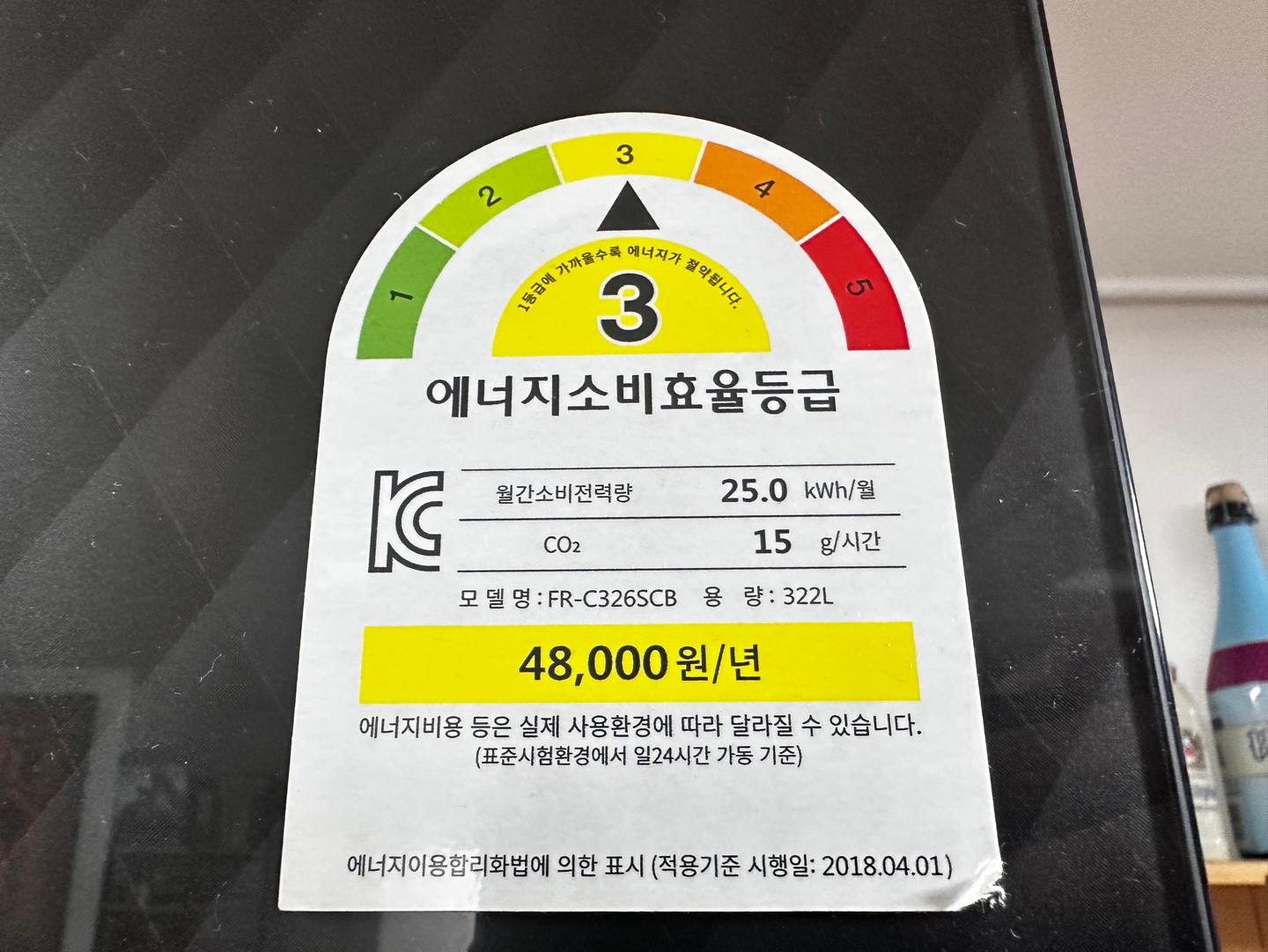 가전제품에는 이런 에너지 소비효율 등급표라는 것이 붙어있다.