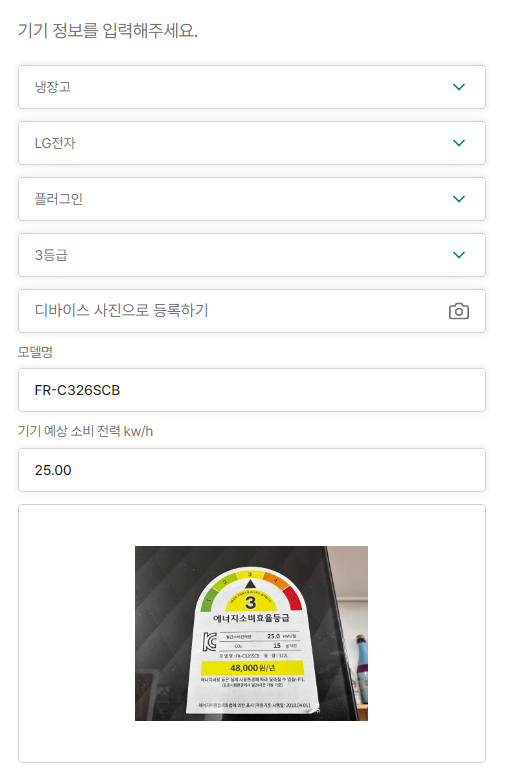 하지만 향후 업데이트에서는 매터표준 (IoT 디바이스 연동 표준)을 적용하여 브랜드에 상관없이 자동으로 연동이 가능하도록 업데이트를 계획 중에 있다. 전자기기의 종류 / 브랜드 / 전력사용구분 / 소비전력구분과 전자기기의 모델명 / 예상 소비전력 / 하루 평균 사용시간 / 디바이스를 이용하는 달 / 구매 날짜와 간단한 메모까지 작성 가능하여 단순히 전력량 예측만 하는 서비스가 아니라 우리집 전자기기 이력을 관리할 수도 있는 서비스이다.