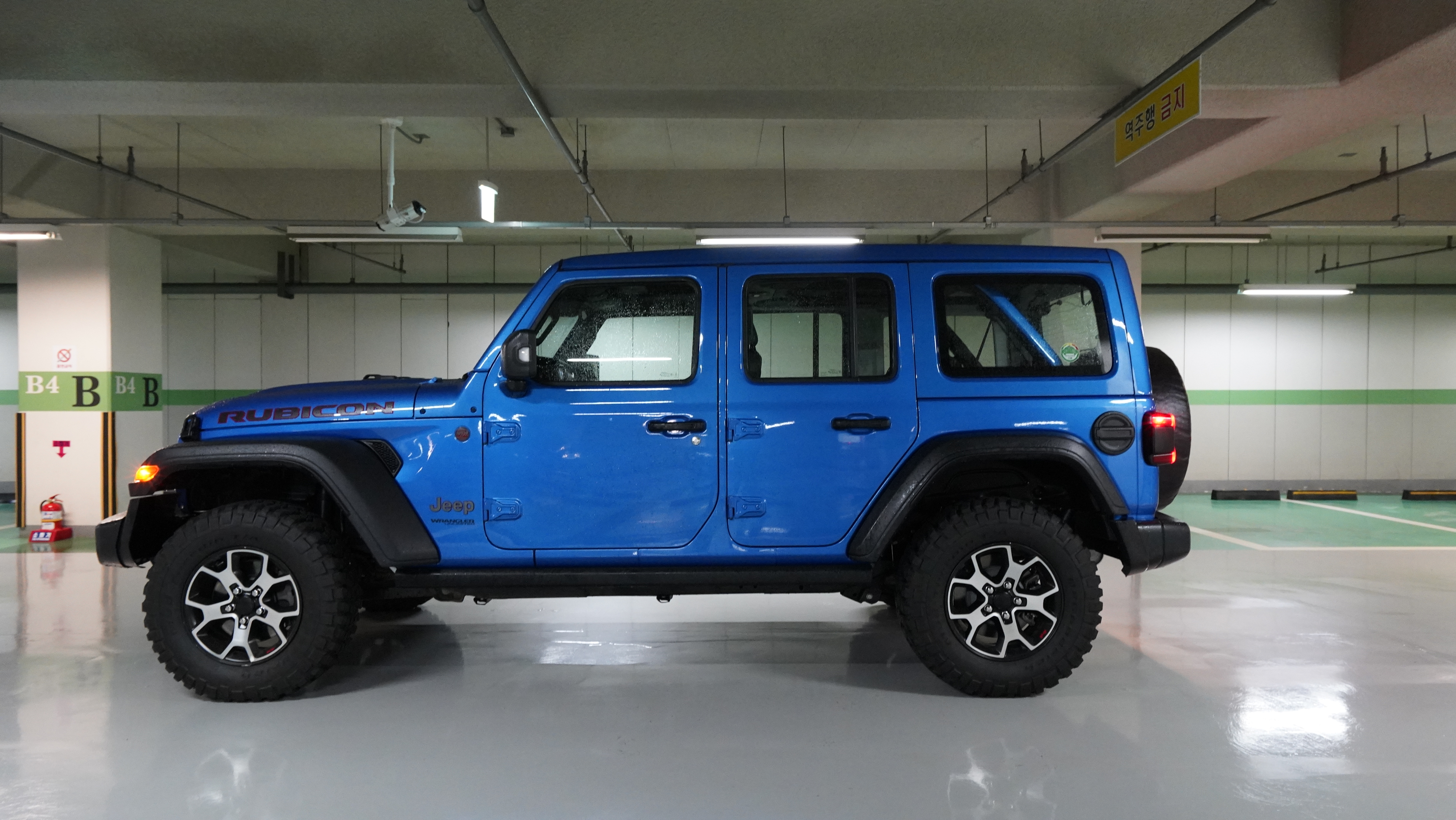 랭글러의 정통 오프로더 트림으로, 락트랙 4x4 시스템과 33인치 머드타이어를 기본 장착했다. 락킹 디퍼렌셜과 스웨이바 디스커넥트 기능이 적용되어 산악 주행에 특화되어 있다. 루비콘은 할인 폭이 가장 크지만 재고가 빠르게 소진되고 있다.