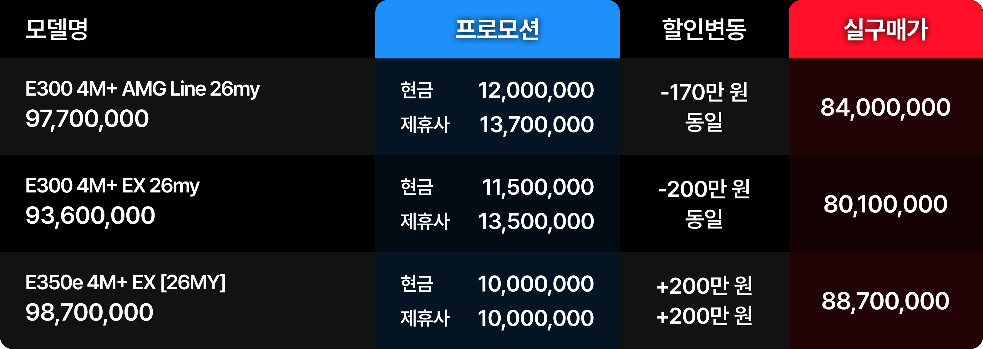 2026년 1월 벤츠 E클래스 E200 / E300 / E450 프로모션 할인 정보
