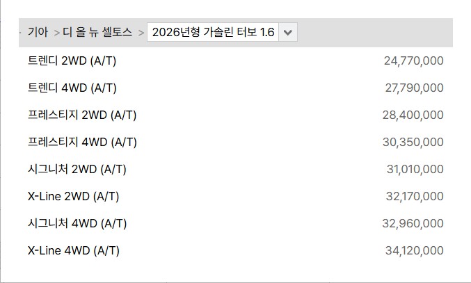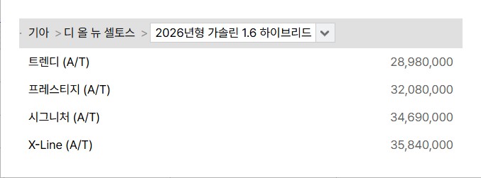 2026년형 셀토스 풀체인지는 고효율 하이브리드 시스템과 1.6 가솔린 터보의 명확한 지향점 차이를 보여준다.