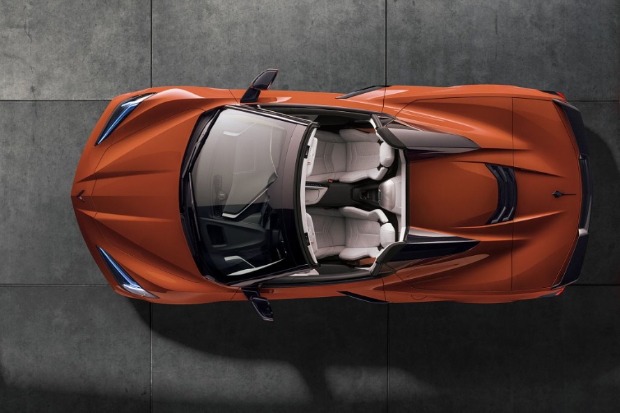 콜벳 C8 모델은 콜벳의 역사적인 이미지를 대대로 이어가고 있으며 전투기에서 영감을 받아서 디자인이 되었다. 특히나 총 6개의 전기모터로 구동되는 설계 방식을 채택하고 있어 유압식 시스템 대비 고장율이 적으며 시속 48km/h까지 동작이 가능하다. 완전 오픈까지는 약 16초 정도 소요가 된다.