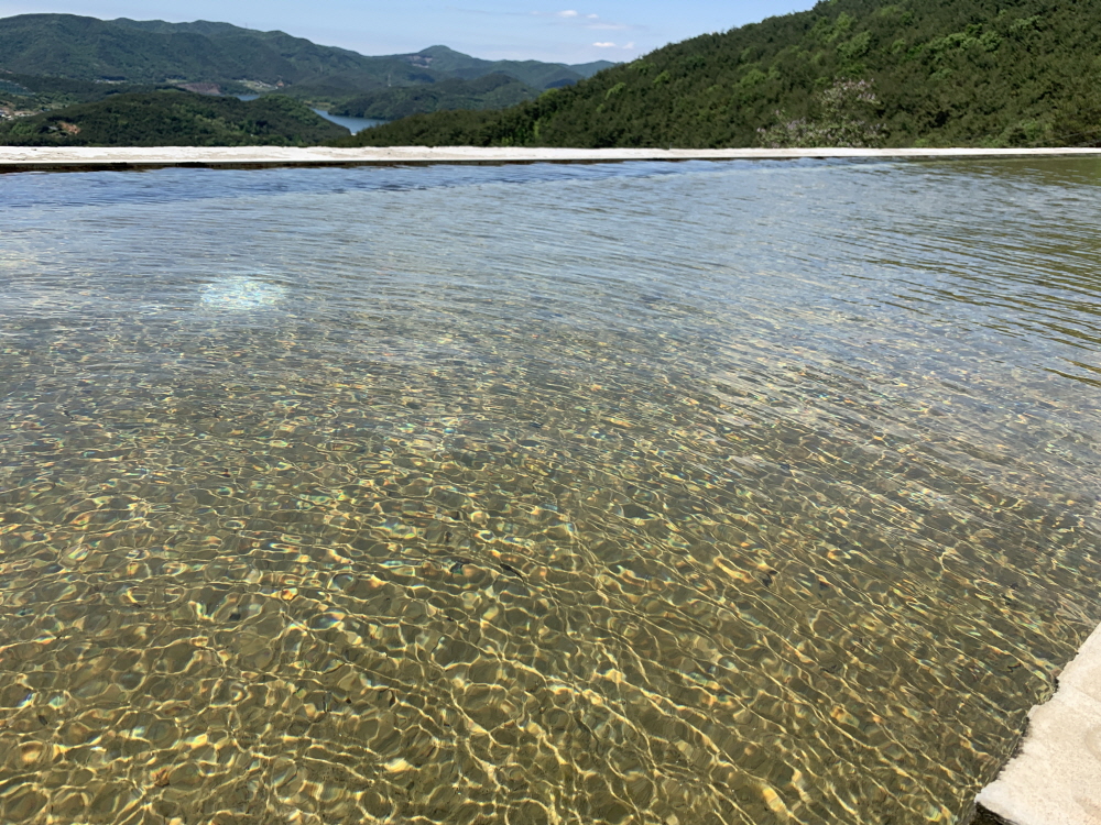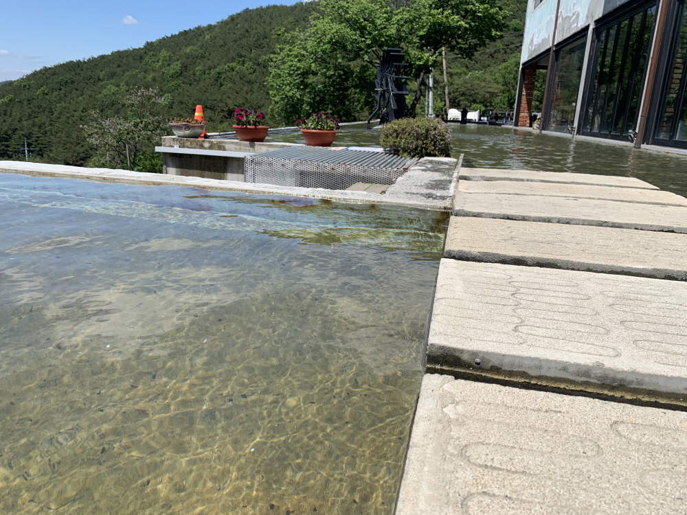 카페를 입장하는 순간 물 위를 걷는 듯한 착각을 보여줄 정도로 놀라운 뷰를 보여준다. 특히나 다양한 포토존이 있기 때문에 주말에 사람이 아주 많지 않다면 물 위에 서 있는 단독 사진을 촬영할 수 있으며 전용 포토 존에서는 빠르게 찍는다면 독 사진을 촬영할 수 있어 인스타그래머들이 찾는 꼭 가봐야할 카페로 손꼽히는 곳이기도 하다.