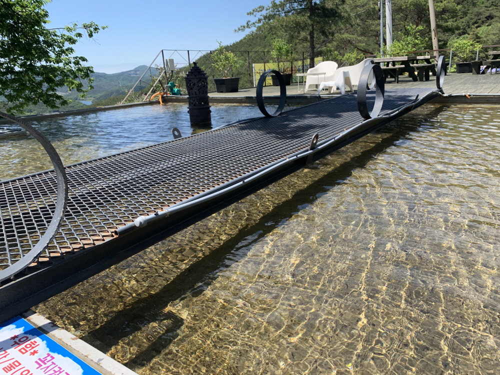카페를 입장하는 순간 물 위를 걷는 듯한 착각을 보여줄 정도로 놀라운 뷰를 보여준다. 특히나 다양한 포토존이 있기 때문에 주말에 사람이 아주 많지 않다면 물 위에 서 있는 단독 사진을 촬영할 수 있으며 전용 포토 존에서는 빠르게 찍는다면 독 사진을 촬영할 수 있어 인스타그래머들이 찾는 꼭 가봐야할 카페로 손꼽히는 곳이기도 하다.