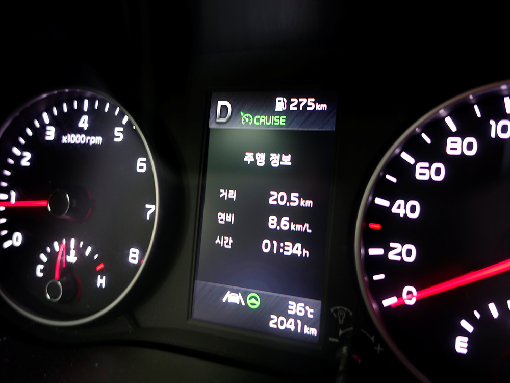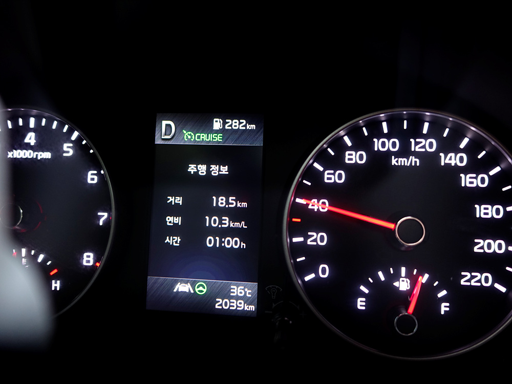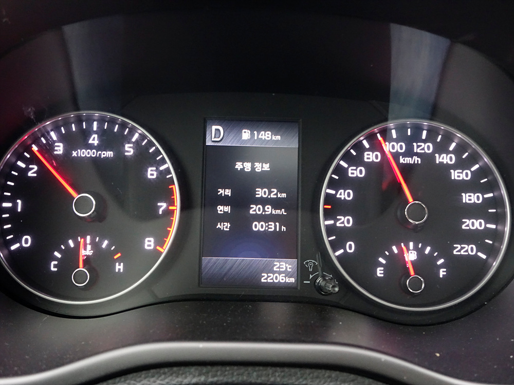 총 주행거리 24.7km의 강남 퇴근길 연비 시승기 결과는 총 주행 시간 1시간 52분이 소요되어 8.8km/L라는 연비를 보여줬다. 공인 시내 연비가 13.5km/L라는 점에서 다소 아쉬운 결과를 보여줬다.