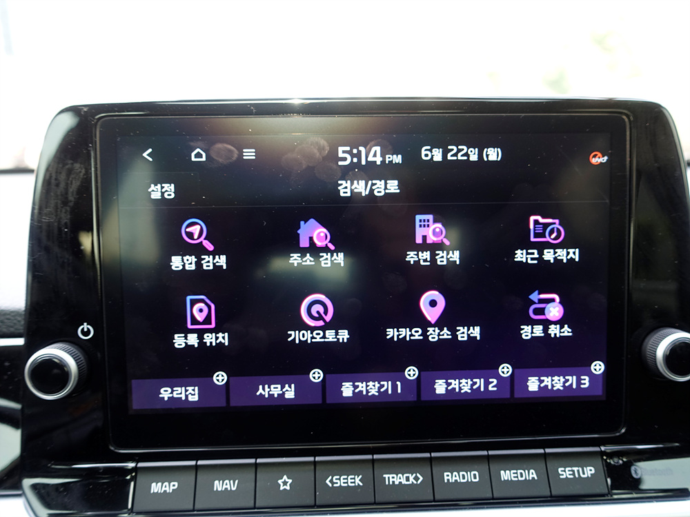 기아 모닝에 적용된 8인치 UVO 내비게이션은 차량 실내를 꽉 차게 보이는 디자인적인 요소와 더불어 내비게이션을 사용할 때 부족함이 없는 모습을 보여준다. 최근 제네시스에 12.3인치 인포테인먼트 시스템까지 적용되었지만 차량 크기가 작아서 그런지 8인치 인포테인먼트 시스템만 되더라도 큰게 부족함이 느껴지지 않았다. 여기에 모닝에는 기아 K7에 적용되었던 기능인 카투홈 기능까지도 적용되어 있다.