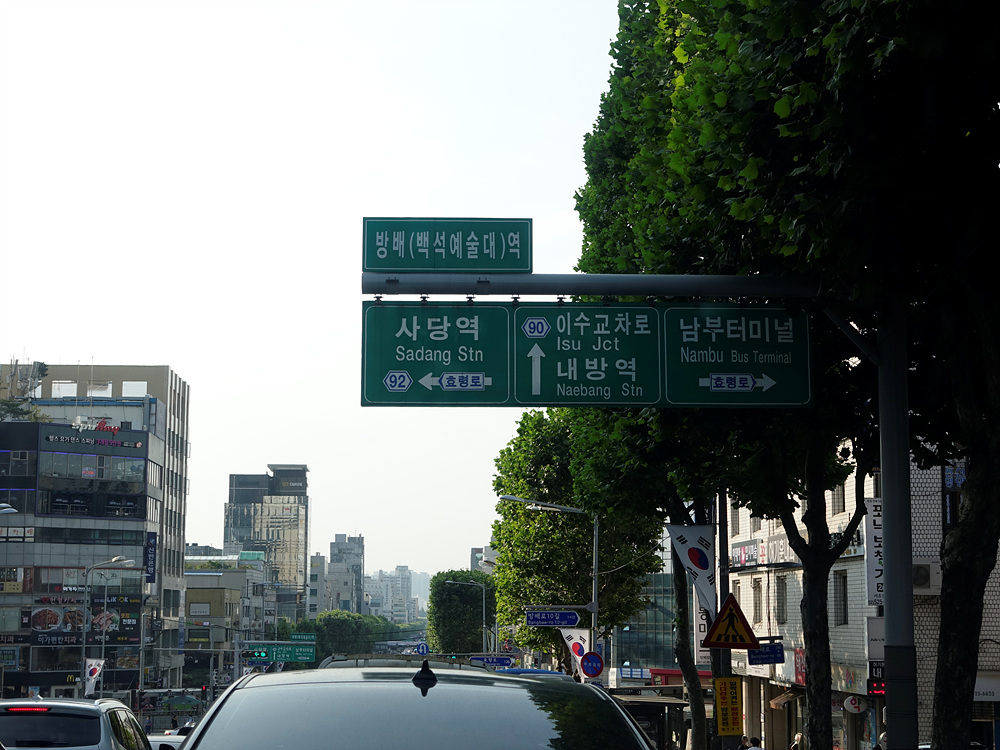 방배역은 13.5km 구간에 위치하고 있으며 이 곳까지 걸린 시간은 총 42분이 소요되어 평균보다 조금 더 빠른 시간대에 도착을 했다. 연비는 10.6km/L로 구로디지털단지역 이후 꾸준히 10km/L 대를 유지하고 있다. 동일 구간에서 동일한 시간대에 통과한 차량은 제네시스 G80 3.5 차량으로 비교하기는 애매하지만 연비는 7.2km/L를 보여줬다.
