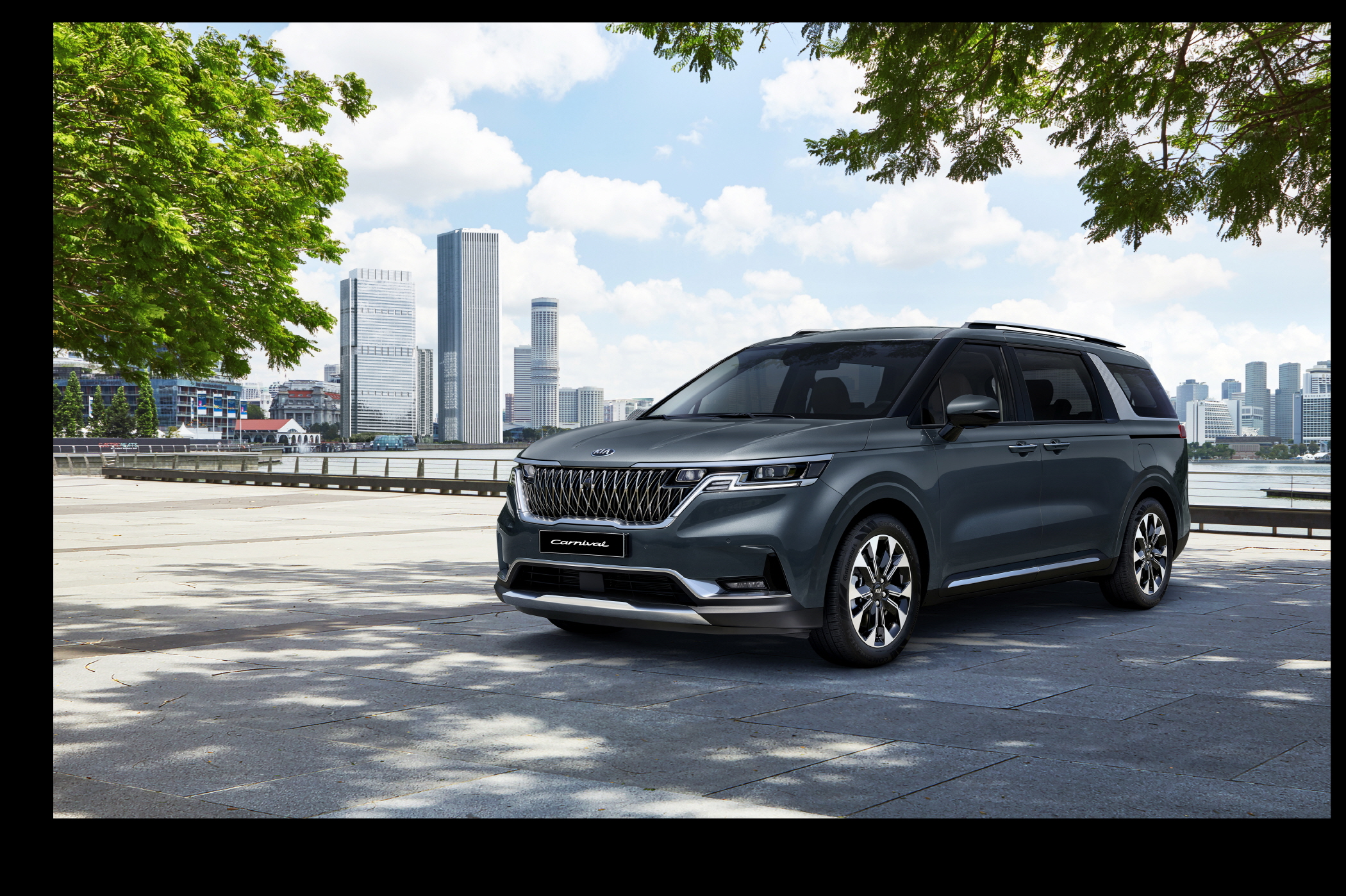 카니발의 전면부는 굉장히 미래지향적인 디자인을 표현하고 있다. 특히나 전면 그릴은 심포닉 아키텍쳐 라디에이터 그릴을 적용하여 오케스트라 지휘자의 역동적인 느낌과 균형적인 무대 퍼포먼스를 모티브로 삼은 만큼 꽤나 진보적인 디자인을 보여주고 있다. 또한 주간 주행등 느낌은 박자와 리듬을 시작적으로 형상화한 모습으로 역동적인 아름다움을 나타내는 부분도 포함하고 있다. 라디에이터 그릴과 헤드램프는 경계가 없어 레인지로버가 느껴지고 있지만 어떤 부분에서는 4세대 쏘렌토가 눈에 보이기도 한 느낌을 가지고 있다.