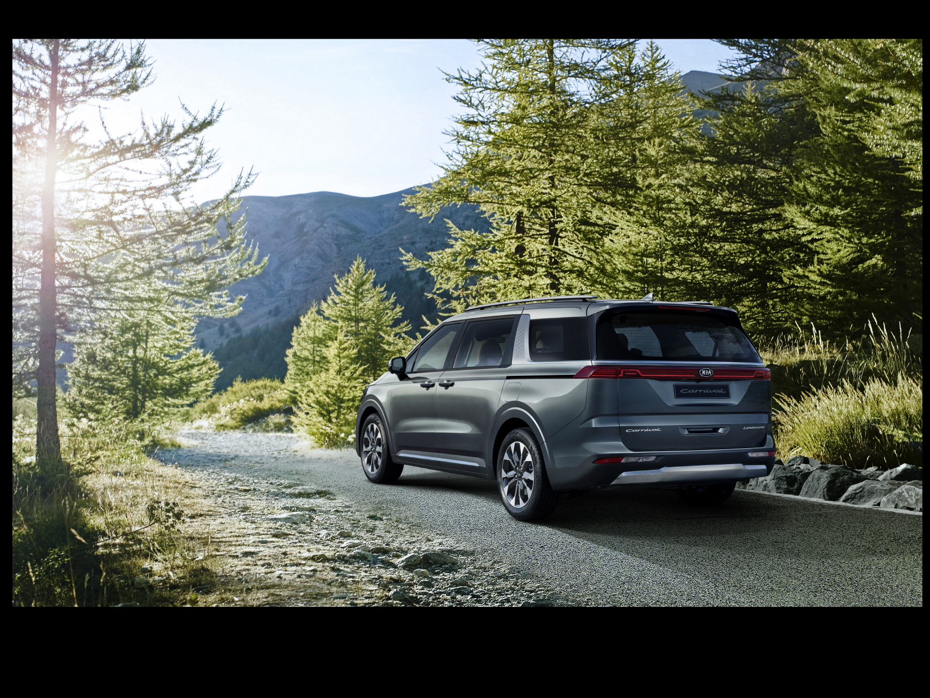 신형 카니발 풀체인지 모델의 후면부는 좀 더 독특한 느낌을 주고 있다. 최근 기아자동차의 디자인 언어인 리어 디자인을 그대로 적용하여 테일램프를 하나로 합쳐놓은 듯한 느낌을 주고 있으며 프론트 DRL과 통일성을 주고 있어 전체적인 디자인 통일감이 완성된다. 또한 후면 범퍼와 디퓨져는 심플한 느낌을 주고 있지만 굉장히 웅장한 느낌으로 존재감을 돋보이게 되며 신형 카니발 차량의 레터링을 기존의 정자에서 필기체로 변경하여 새로운 느낌을 전달한다.