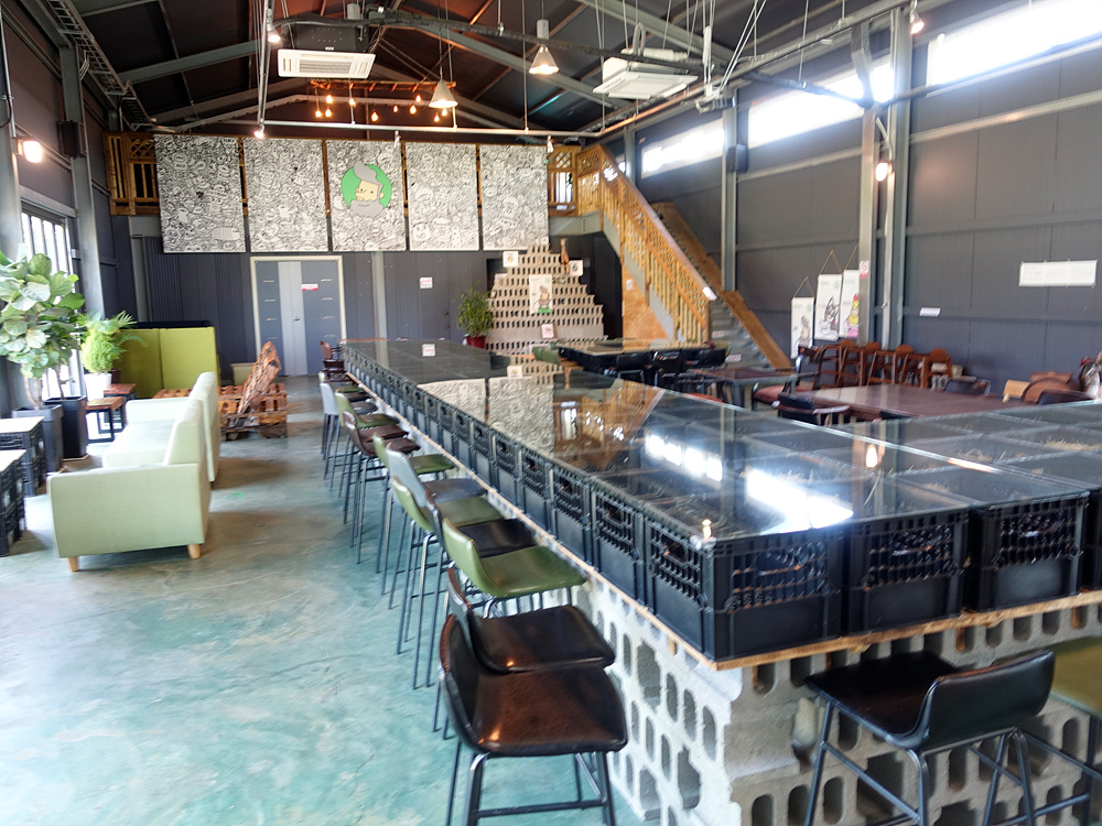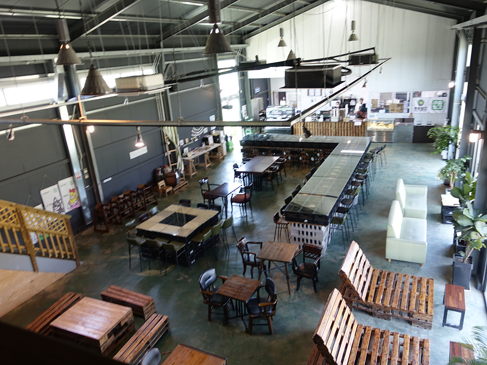 우유창고 안에 실내 공간은 실제 공장에서 사용되는 나무 파레트를 개조해서 의자나 테이블을 만들었고 우유박스로 사용되는 우유 상자를 가지고 테이블을 만들어 굉장히 독특한 실내 인테리어를 보여주고 있다. 공간을 실제로 아주 크지는 않지만 공간마다 개성이 강하며 2층에도 작은 공간이 마련되어 있다.