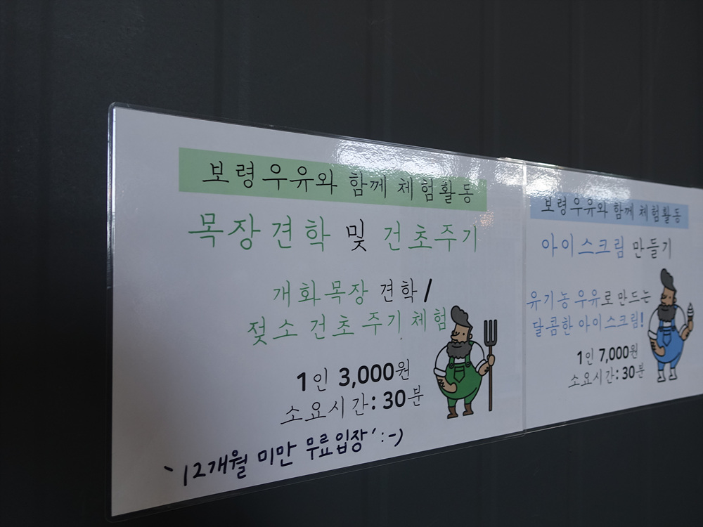 우유창고가 사랑 받는 이유 중 하나는 바로 보령우유와 함꼐 체험활동을 할 수있다는 점이다. 목장 견학 및 건초 주기는 실제로 아이뿐만 아니라 어른들도 체험하기 힘들기 때문에 실제로 체험해보면 굉장히 좋은 구성을 가지고 있다. 젖소에게 건초를 주면서 우유가 어떻게 만들어지는지를 체험할 수 있고 우유로 만든 아이스크림 만들기 등 우유에 관련된 다양한 체험을 할 수 있는 것이 특징이다.