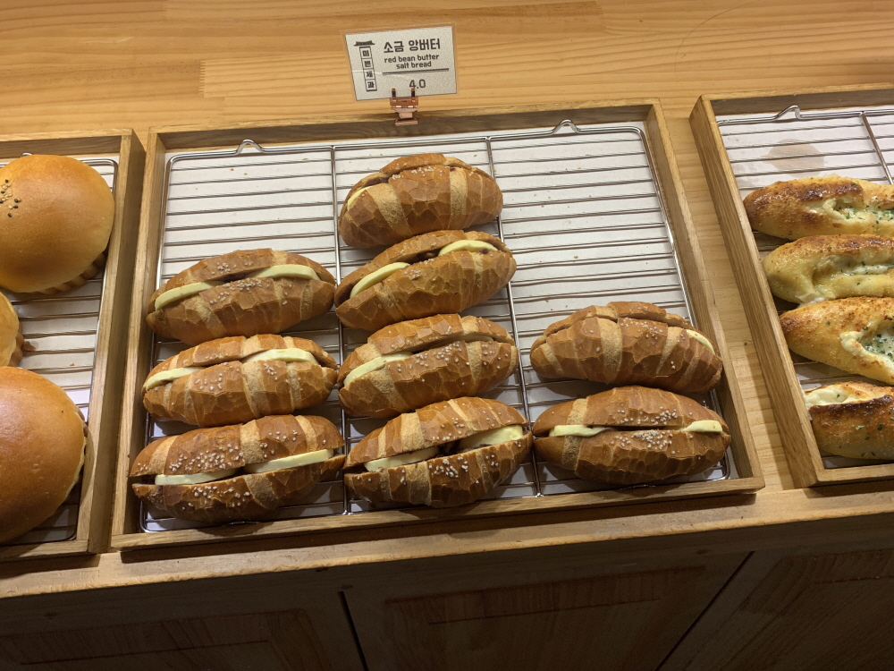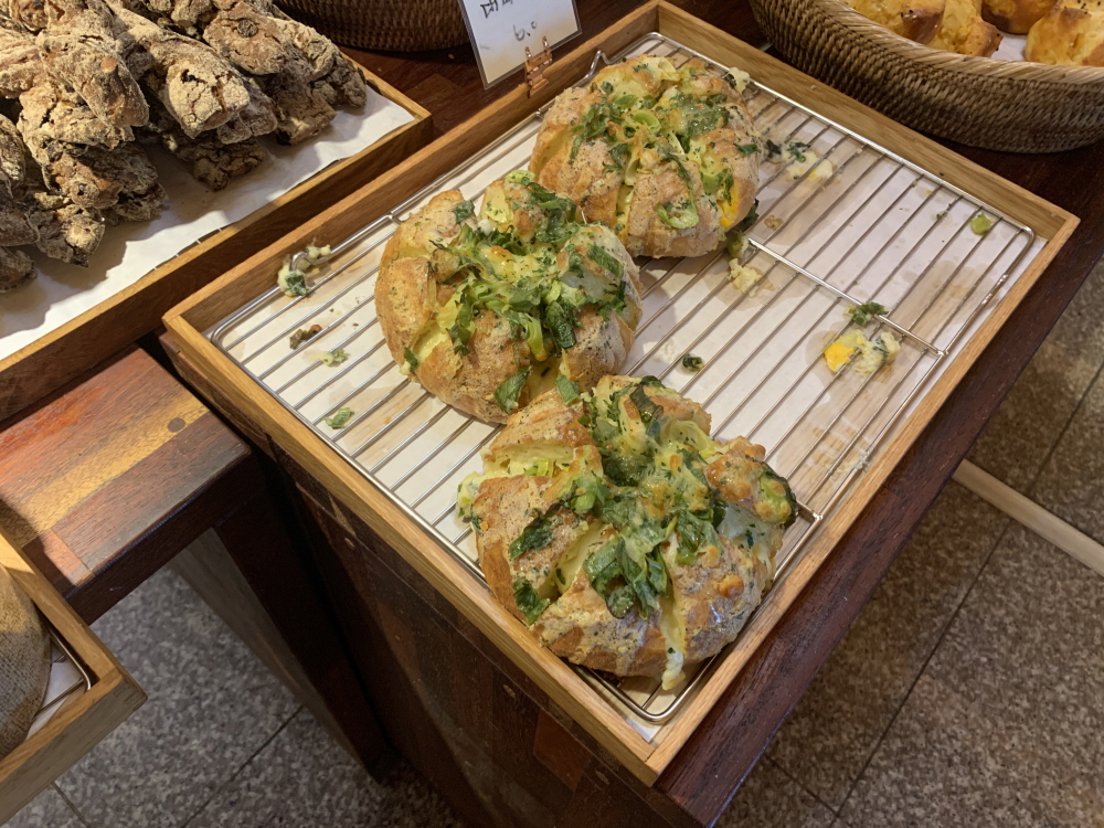 다른 빵을 모두 맛보지 않았지만 이 곳에서 유명한 소금 앙버터를 먹어봤다면 케익류나 이름이 기억나지 않지만 마늘과 파로 만든 빵도 꽤 매력적인 맛을 가지고 있는 맛을 보여줬다. 일일이 물어보지 않았지만 케잌류까지 더한다면 약 30가지 정도의 빵을 맛볼 수 있다.