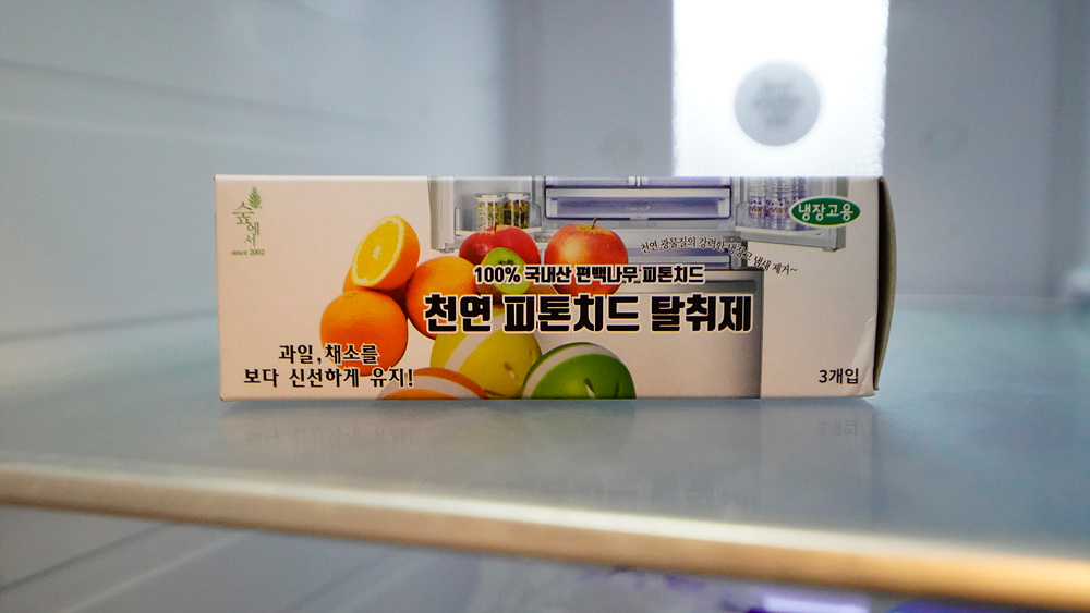 사실 화학적인 성분을 주로 사용하는 냉장고 탈취제 제품에 비해서는 아주 강력한 탈취효과를 지니지 않는다. 하지만 천연 성분으로 보다 안전하게 우리가 먹는 과일 옆에 두더라도 안전한 제품이며 냉장고는 물론 집안 구석 구석 악취를 제거할 수 있는 성분으로 냉장고 속 유해물질 및 향균 작용으로 과일, 야체 및 각종 음식의 신선도를 높혀줄 수가 있다.