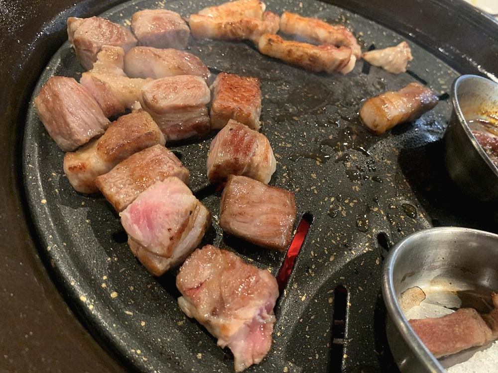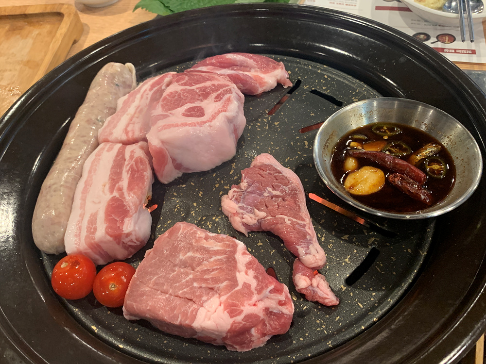 성인 남성 2명이서 먹은 김일도 한판은 꽤 만족스럽다. 어느정도 고기를 구워주며 단순히 고기 뿐만 아니라 방울 토마토와 소세지까지 다양하게 먹을 수 있는 점이 굉장히 매력적이다. 특히나 고기가 굉장히 투툼하게 잘라서 나오기 때문에 육즙이 가득한 맛을 느낄 수 가 있다.