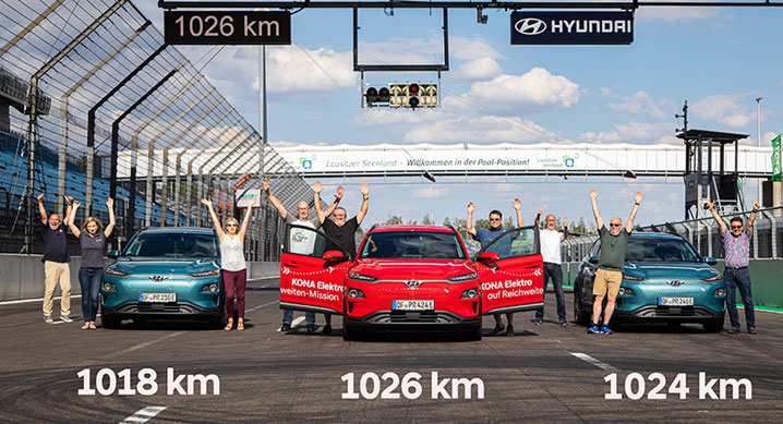 유럽 시장을 겨냥하기 위해서 체코 공장에서도 코나 일렉트릭 모델을 생산하고 있는데요. 독일에서는 7월 22일 4일간 독일 유로 스피드웨이 라우지츠에서 코나 일렉트릭 모델 3대로 한 번 충전으로 주행거리 1,000km를 돌파했다고 합니다.