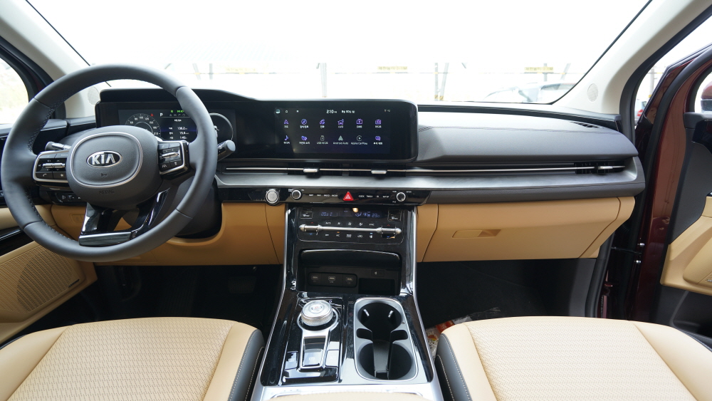 카니발 내장제 컬러는 새들 브라운 / 코튼 페이지 / 미스티 그레이 총 3가지로 구분된다. 사진에서는 코튼 베이지 컬러와 새들 브라운 컬러로 개인적인 취향에 따라 실내 내장제를선택하는것이좋다.