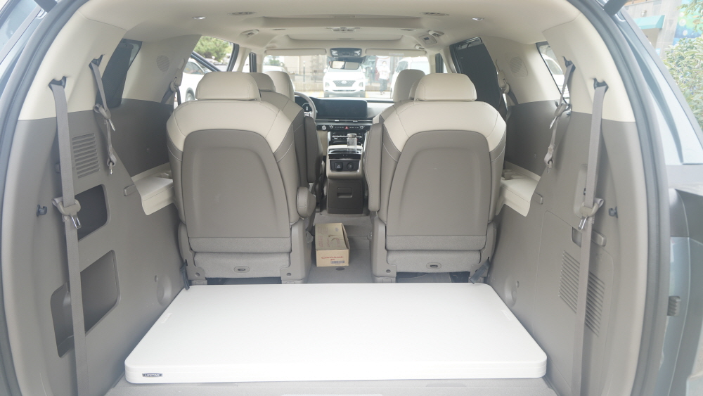 트렁크 공간 또한 굉장히 다른 느낌을 가지고 있다. 7인승 모델은 골프백을 세워서 보관할 수있을 정도로 꽤 넓고 깊은 트렁크 공간을 보여주고 있어 만족감이 크다. 반면 9인승 모델과 11인승 모델은 4열 시트를 접어 두었을 때 플랫한 느낌의 트렁크 공간으로 차박을 하기에는 좀 더 쉽고 편안한 느낌을 보여준다.
