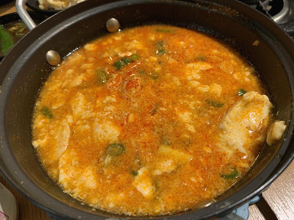 하안돌곱창에 오면 가장 먼저 만나볼 수 있는 음식은 바로 순두부이다. 순두부찌개는 처음 서비스로 나오는 음식이지만 한 번 맛보게되면 또 한번 추가로 주문할 정도로 곱창 맛집이지만 그 이상의 맛을 보여주는 맛으로 소주 한 잔에 순두부 찌개를 맛보고 그리고 곱창 한 점이면 무엇하나 부족함이 없다.