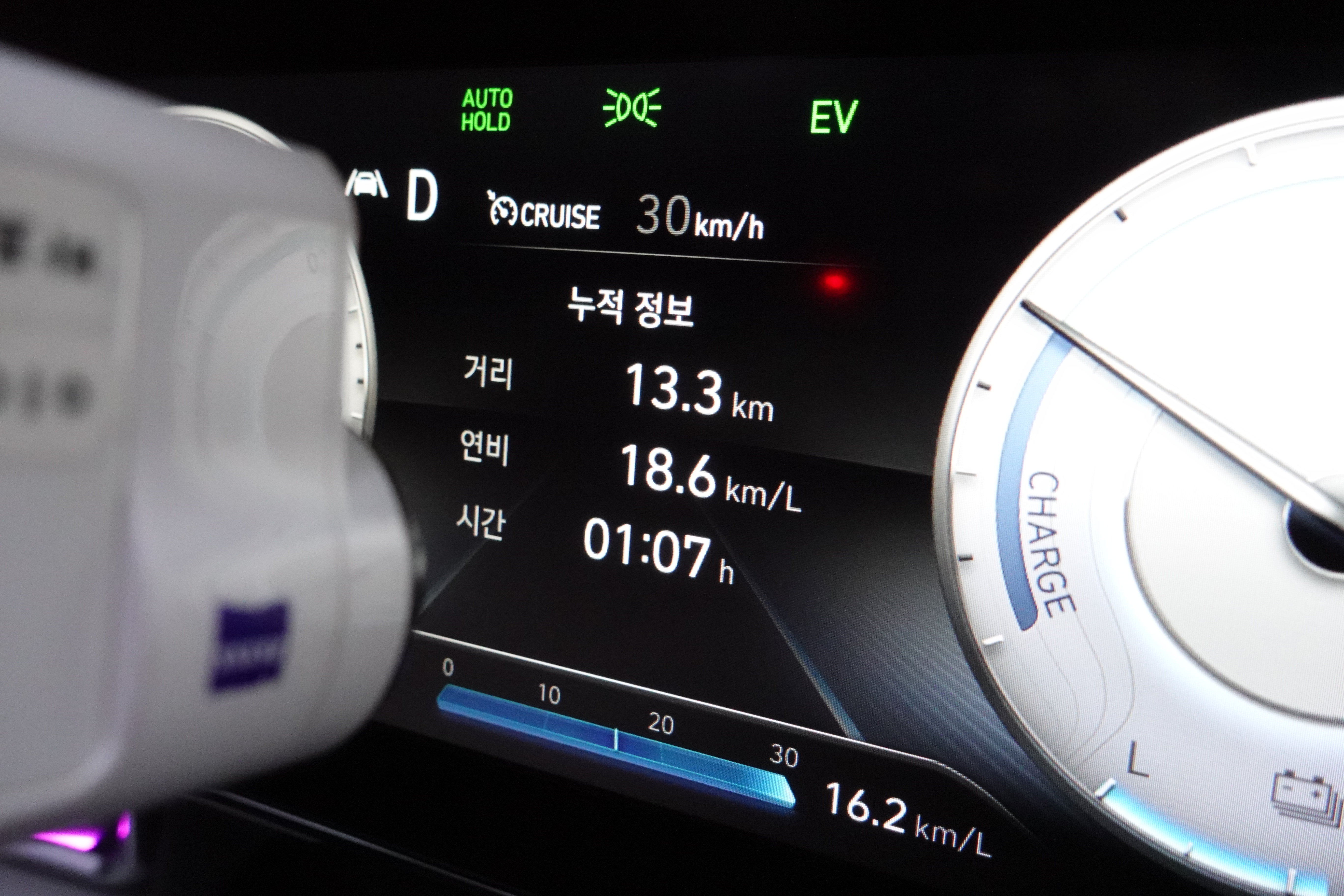 특히나 고속도로에서 보여주는 어댑티브 크루즈 컨트롤 기술인 HDA (Highway Driving Assist) 기술은 아반떼 하이브리드가 최적의 연비를 위하여 능동적으로 시속 5~8km/h를 조정하는 것을 볼 수가 있었다.