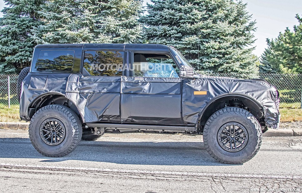 포드 브롱코 모델을 기다리는 사람들에게 좀 더 설레는 소식이 들려왔다. 바로 오프로드 성능을 강화시킨 모델인 브롱코 랩터 모델이 시험주행 중 해외 매체인 Motorauthority에 포착 되었다. 포드 브롱코 모델은 기본적으로 지프 랭글러에 대적하기 위하여 35인치 오프로드 전용 블록 타이어와 17인치 비드락 휠 조합을 가지고 있으며 여기에 험로주행에 적합한 구성을 가지고 있는 것이 특징이다. 하지만 이보다 더 오프로드로 뛰어난 모델을 준비 중에 있다.