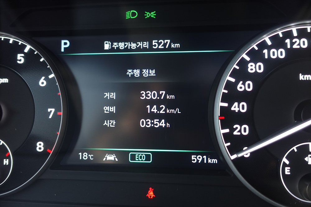 제네시스 G90 모델에서 판매되는 모델 중 3.8 가솔린 모델은 8.9km/L, 3.3 가솔린 터보 모델은 8.8km/L, 5.0 자연흡기 모델은 7.3km/L를 보여주는 가운데 국내에서 가장 판매가 안되는 3.3 가솔린 터보 모델로 서울에서 목포까지 달려보기로 했다.