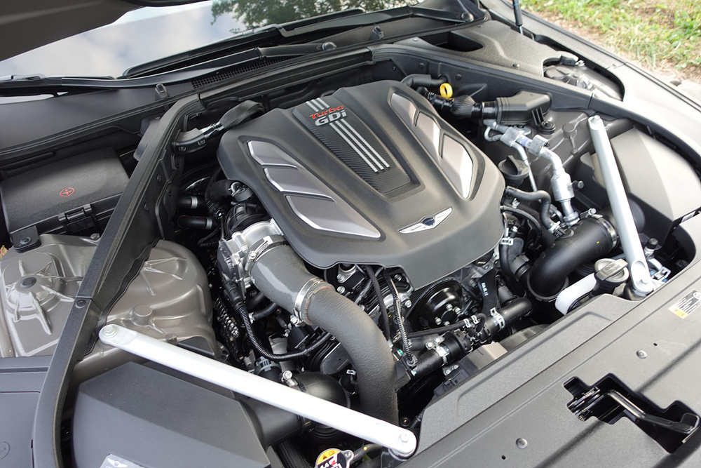 제네시스 플래그쉽 모델에서 가장 배기량이 낮은 엔진은 바로 3.3 가솔린 터보이다. 사실 정확히는 싱글터보가 아닌 트윈터보 차져를 장착한 엔진인데 3.8 모델이 315마력 5.0 모델이 425마력을 보여줄 때 가장 낮은 배기량이지만 트윈터보 엔진으로 370마력이라는 가장 중간의 파워트레인을 보여준다.
