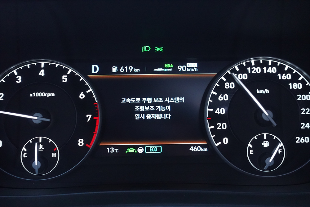 하지만 이게 아쉽다고 이야기를 해야할까??? HDA II가 적용되기 시작한 그랜저 페이스리프트 모델부터 좀 더 민감해진 스티어링 반응으로 조금만 스티어링을 잡지 않으면 경고가 울리지만 HDA I 에서는 꽤 오랫동안 잡지 않아도 경고가 울리지 않는다.