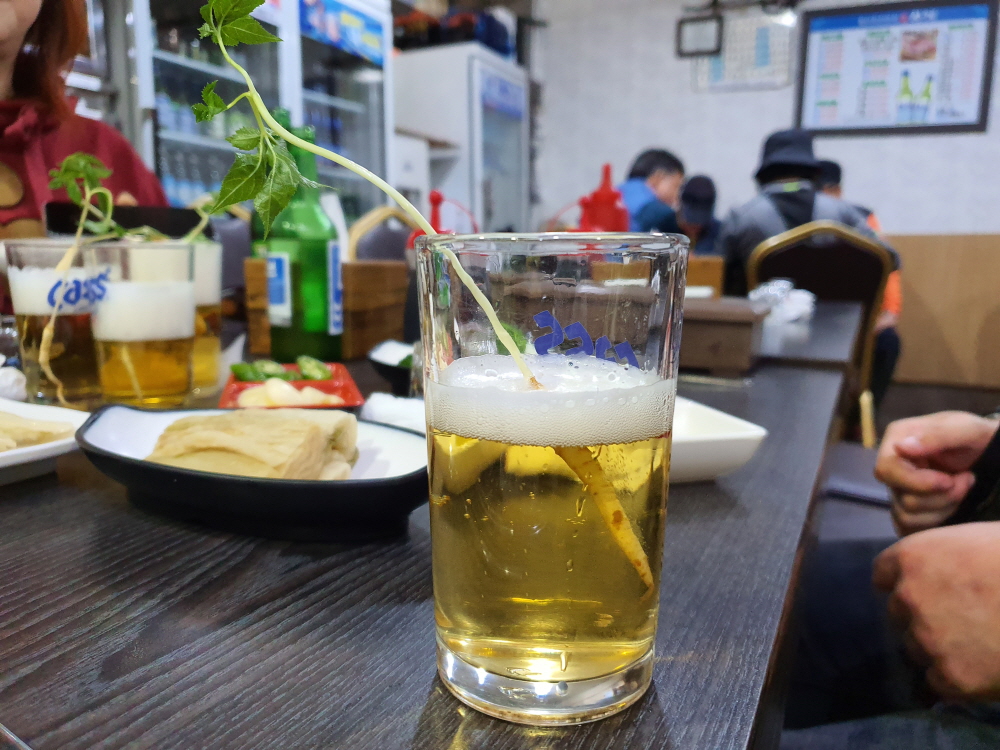 부산 다찌 횟집인 사계는 처음부터 임팩트가 굉장히 강한 곳이였다. 인원 수 만큼 작은 삼을 하나 줘서 소주잔이나 맥주잔에 넣어 먹을 수가 있다. 물론 한 입거리 밖에 안되기 때문에 씹어먹어도 되지만 왠지 다른 곳과 다른 느낌을 주기에 괜히 대접 받는 느낌을 준다.