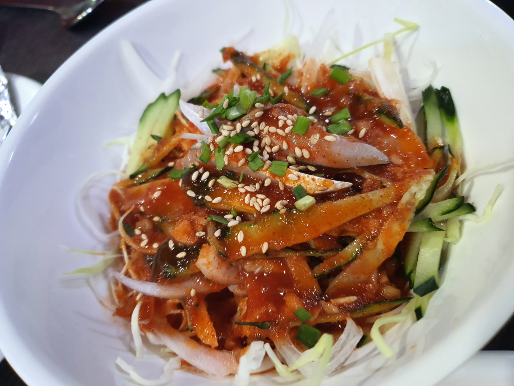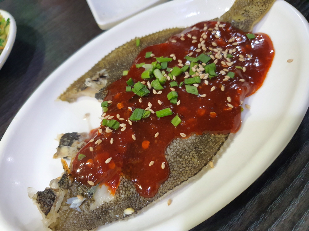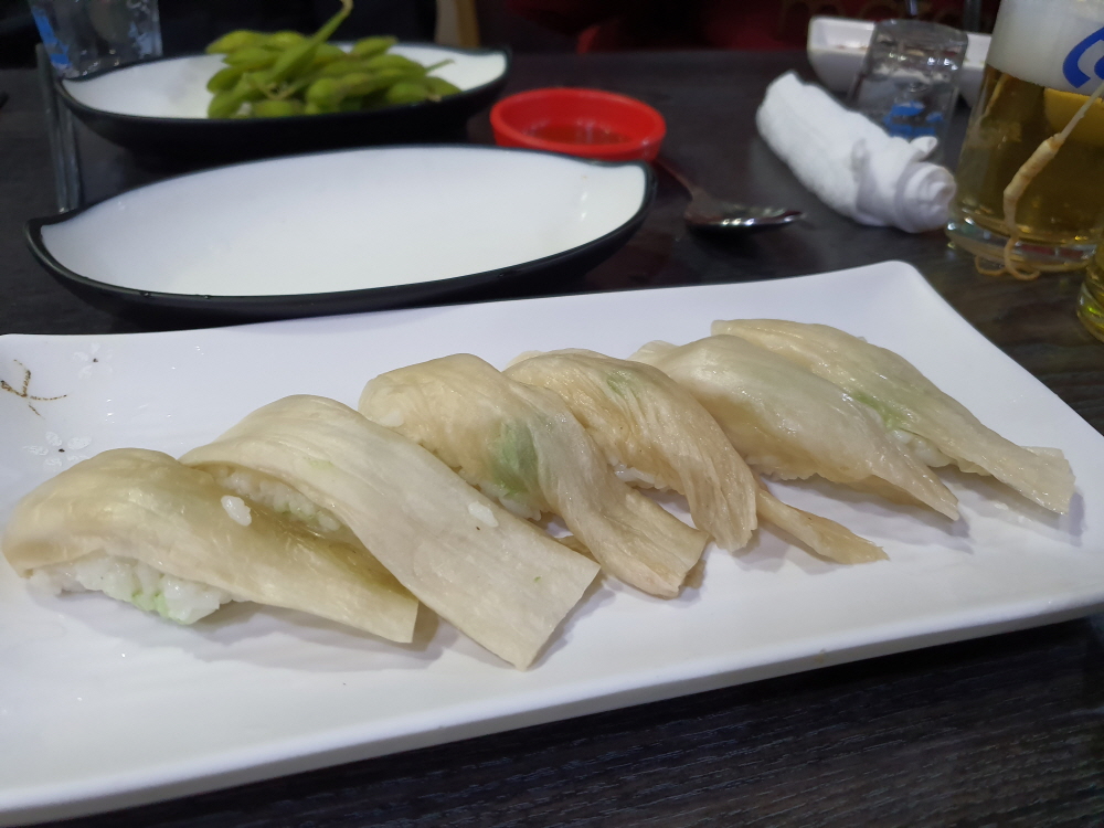 처음으로 나온 묵은지 초밥은 별거 아닐 수 있지만 에피타이저로 충분했으며 혹시 모를 초딩 입맛 때문인지 몰라도 만두도 인원수대로 나왔다. 여기에 계란찜과 가자미까지 메인 메뉴가 나오기도 전에 정신없이 몰아치는 느낌이 강하다. 나주에 먹어야지? 하고 아껴둔다면 계속 나올 메뉴에 치일 수 있으니 빠르게 먹어 치우는 것이 좋다.