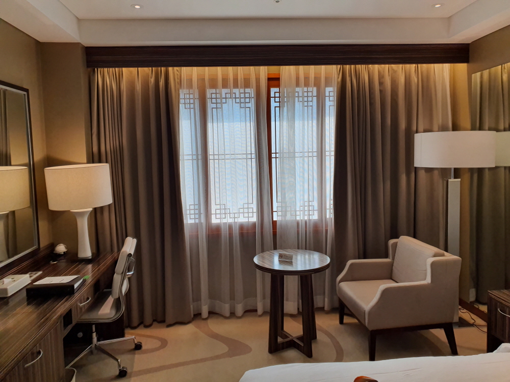 특히나 농심호텔의 하이디럭스 더블 객실은 전체적인 인테리어와 창문의 조화가 굉장히 매력적인 곳이다. 한옥과 호텔의 조화를 보여주는 듯한 느낌으로 이름처럼(?) 구수한 느낌도 주고 있지만 TV나 전체적인 시설적인 부분에서는 크게 부족한 부분이 없어보인다.