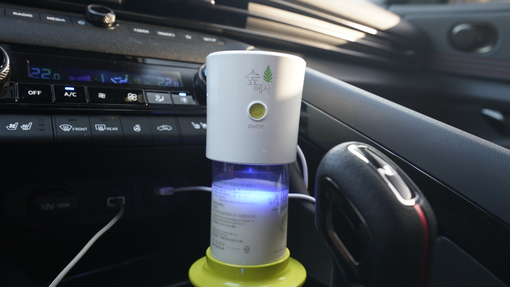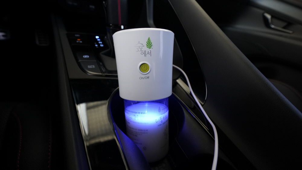 숲에서 피톤치드 산림욕기 S1500 제품은 자동차 전용으로 나온 제품으로 다양한 곳에 위치할 수 있다. 운전자 컵홀더에 쏙 들어가며 운전자쪽이 아닌 2열 컵홀더에 연결하고 USB 전원만 연결해주면 되는 제품으로 특별히 무엇하나 해줄 필요없이 사용 가능하다. 신차 냄새제거 목적이라면 USB 외장 베터리를 연결하여 주차를 시켜놓고 외출해도 가능하다.